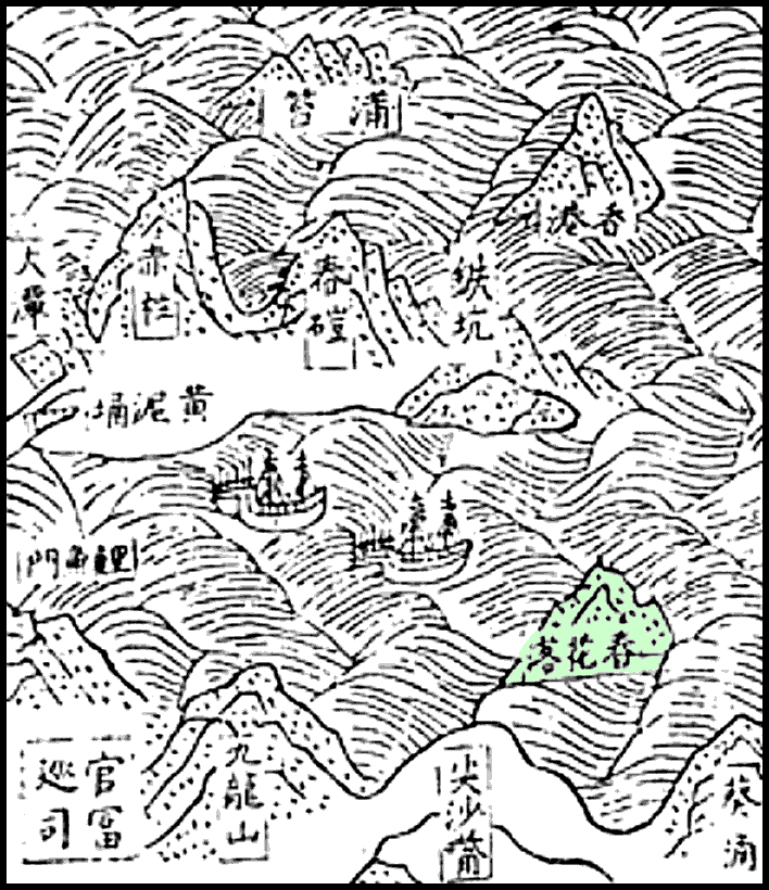이 섬은 한때 춘화락(春花落), 즉 "봄꽃이 지다" 또는 일부 서양 지도에서는 춘화도로도 알려졌다. 현재 '''춘화락'''은 여전히 섬 남동쪽 모퉁이에 있는 지명 또는 옛 마을이다. 명나라의 정부 문서에는 춘화락 근처의 바다를 춘화양(春花洋)이라고 명명했는데, 이는 "봄꽃의 바다"를 의미한다. 명나라 해군은 한때 그곳에서 해적 함대를 격파했다.