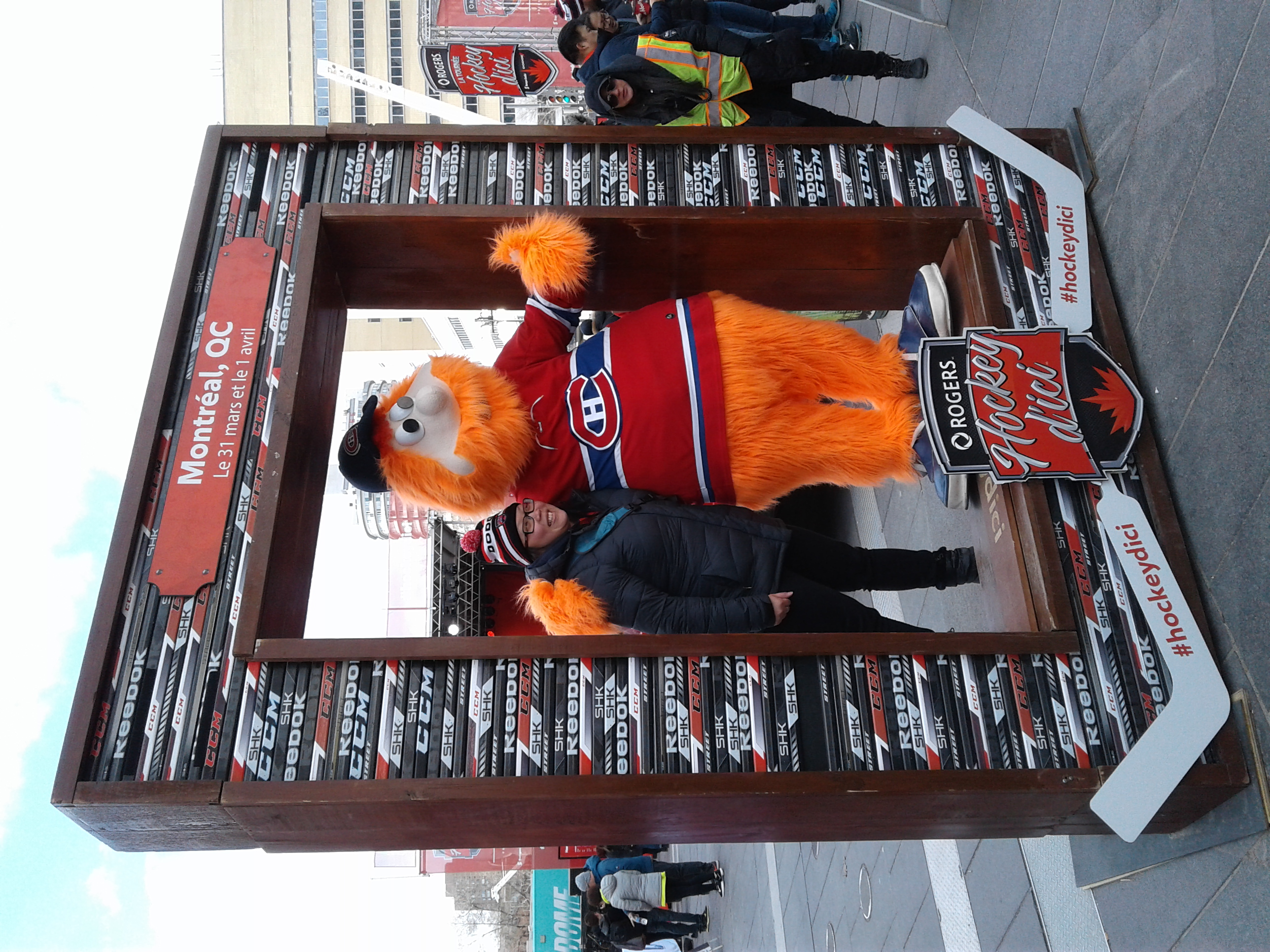 2004–05 NHL 시즌부터 카나디앵 드 몽레알은 구단의 오랜 역사상 최초의 복장 마스코트인 유피!를 공식 마스코트로 채택했다. 유피!는 메이저 리그 베이스볼(MLB)의 몬트리올 엑스포스의 오랜 기간 마스코트였으나, 엑스포스가 2005 메이저 리그 베이스볼 시즌을 앞두고 워싱턴 D.C.로 연고지를 옮겨 워싱턴 내셔널스가 되면서 버려졌다.[75] 이러한 변화로 유피!는 프로 스포츠 역사상 최초로 리그를 옮긴 마스코트가 되었다.[76] 그는 또한 엑스포스 시절부터 프로 스포츠 경기에서 퇴장당한 최초의 마스코트이기도 하다.[76] 2020년 6월, 유피!는 캐나다에 기반을 둔 구단 출신으로는 최초로 마스코트 명예의 전당에 헌액되었다.[77]