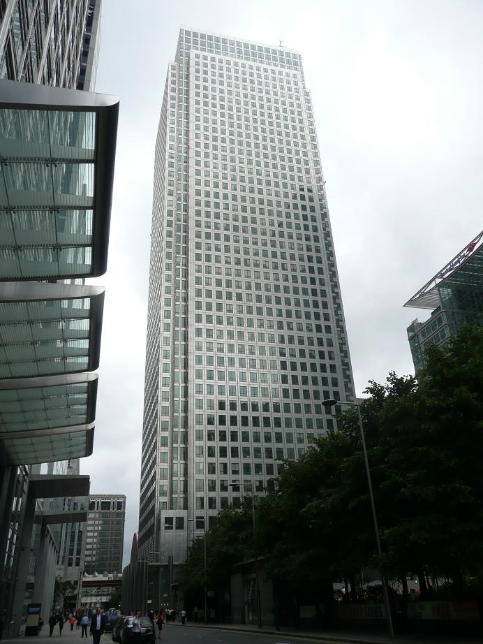 1 | ![]() | 원 캐나다 스퀘어 | 235 | 771 | 50 | 1991 | 영국에서 세 번째로 높은 완공된 건물이며, 가장 높은 건물은 더 샤드이다. 세자르 펠리가 설계했으며, 1991년 완공 당시 영국에서 가장 높은 건물이였다. BNY 멜론, CFA 연구소, Clearstream, 유럽 에너지 거래소, 오일러 헤르메스, 국제 설탕 기구, 마힌드라 사티암, MetLife, 무디스 애널리틱스, 리치 등이 입주해 있다.[21] |
