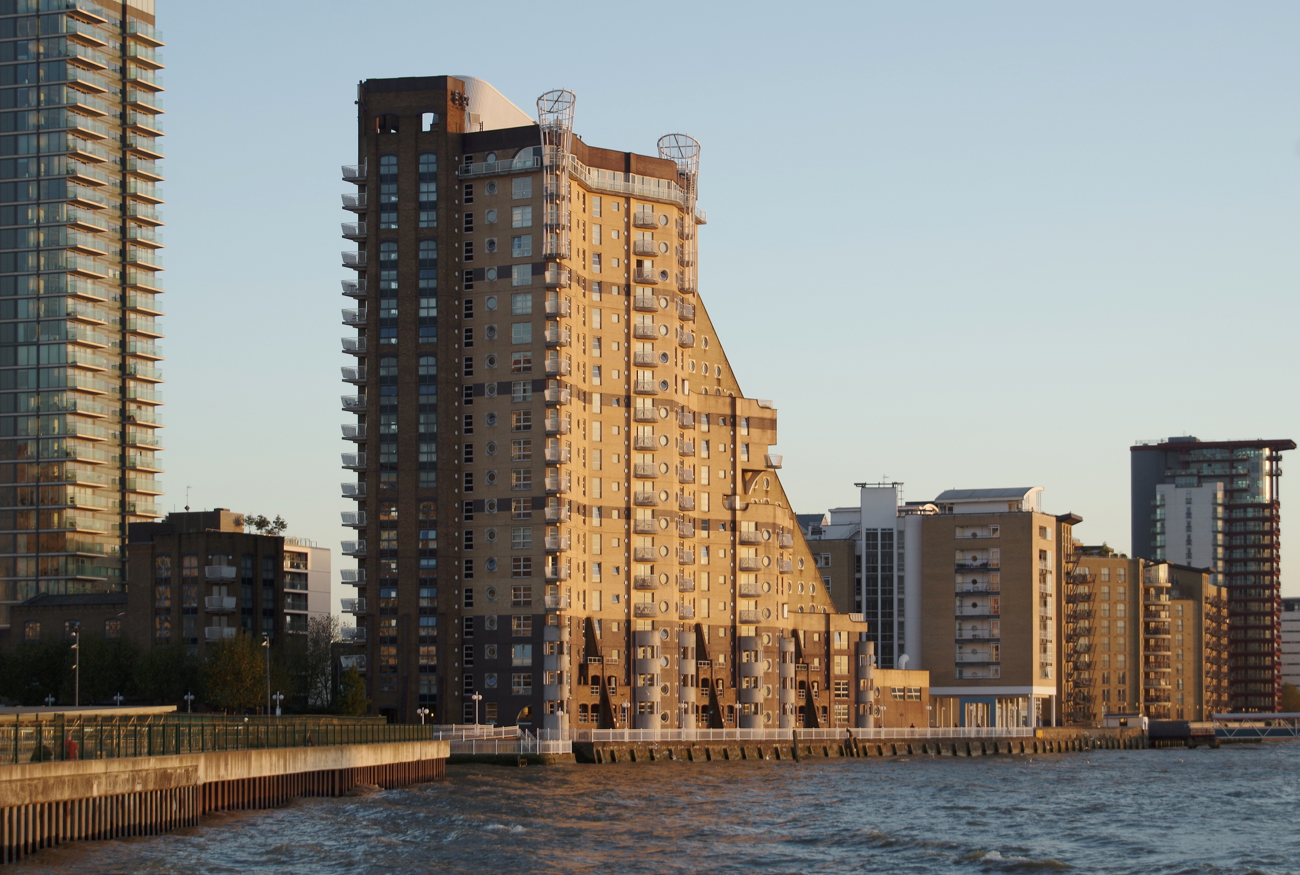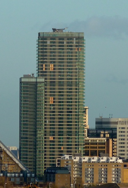 31 | ![]() | 1 웨스트 인디아 키 | 108 | 354 | 36 | 2004 | 주거/호텔 복합 건물. 1–12층은 메리어트 호텔이 사용하고 있다.[68] 13–33층에는 158개의 아파트가 있다. 1 웨스트 인디아 키는 2004년 완공되었을 때 영국에서 가장 높은 주거 건물이였다.[69] |