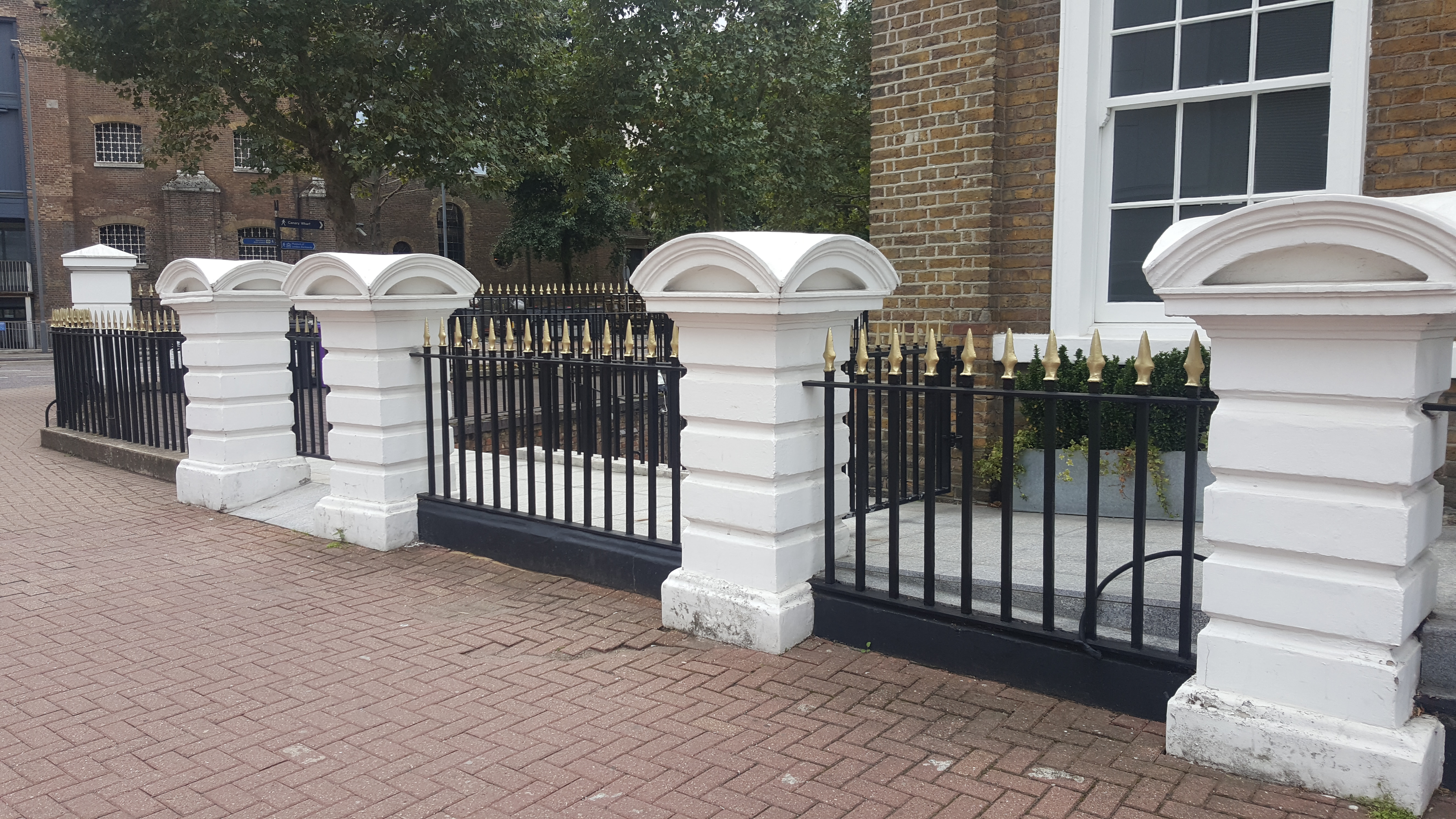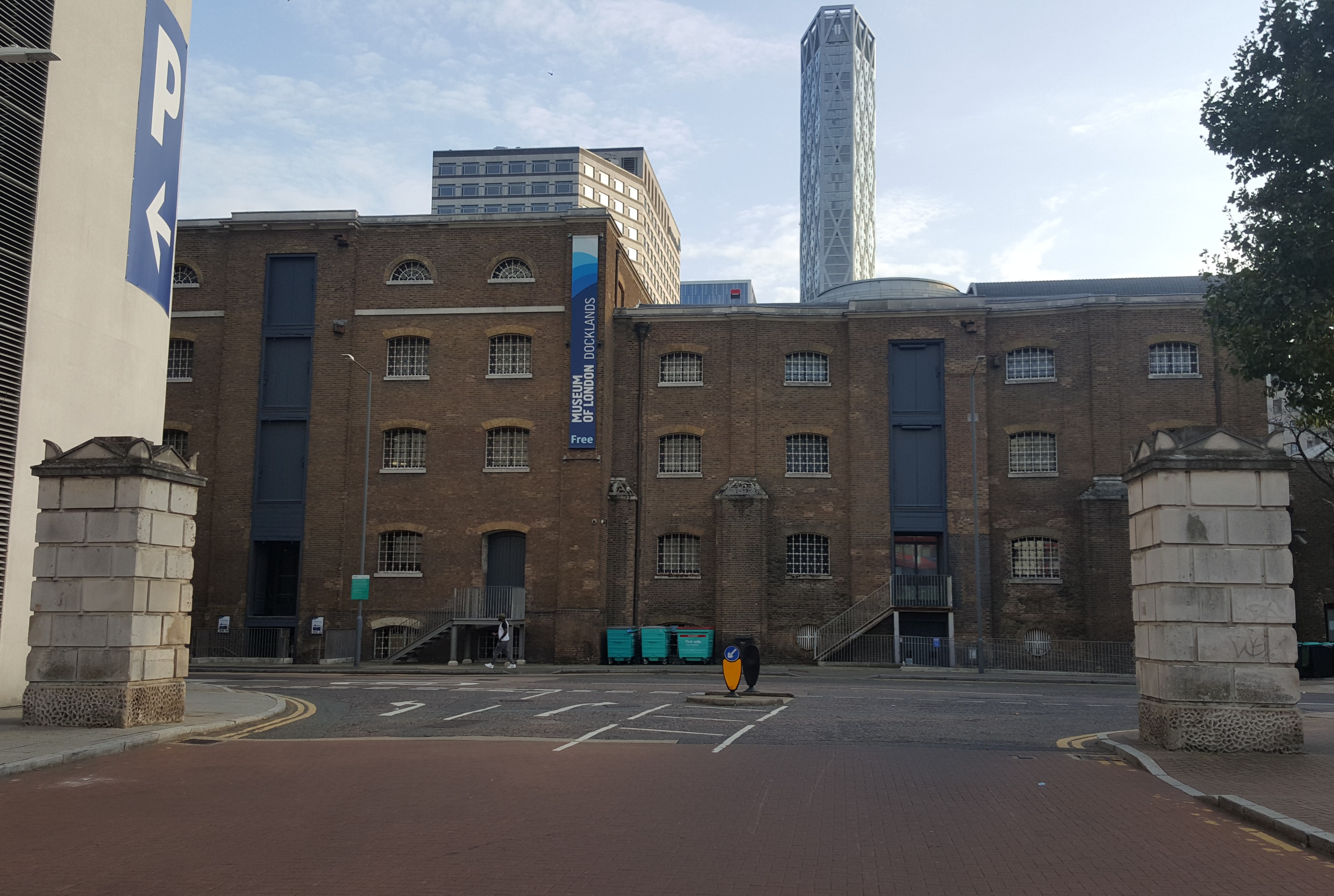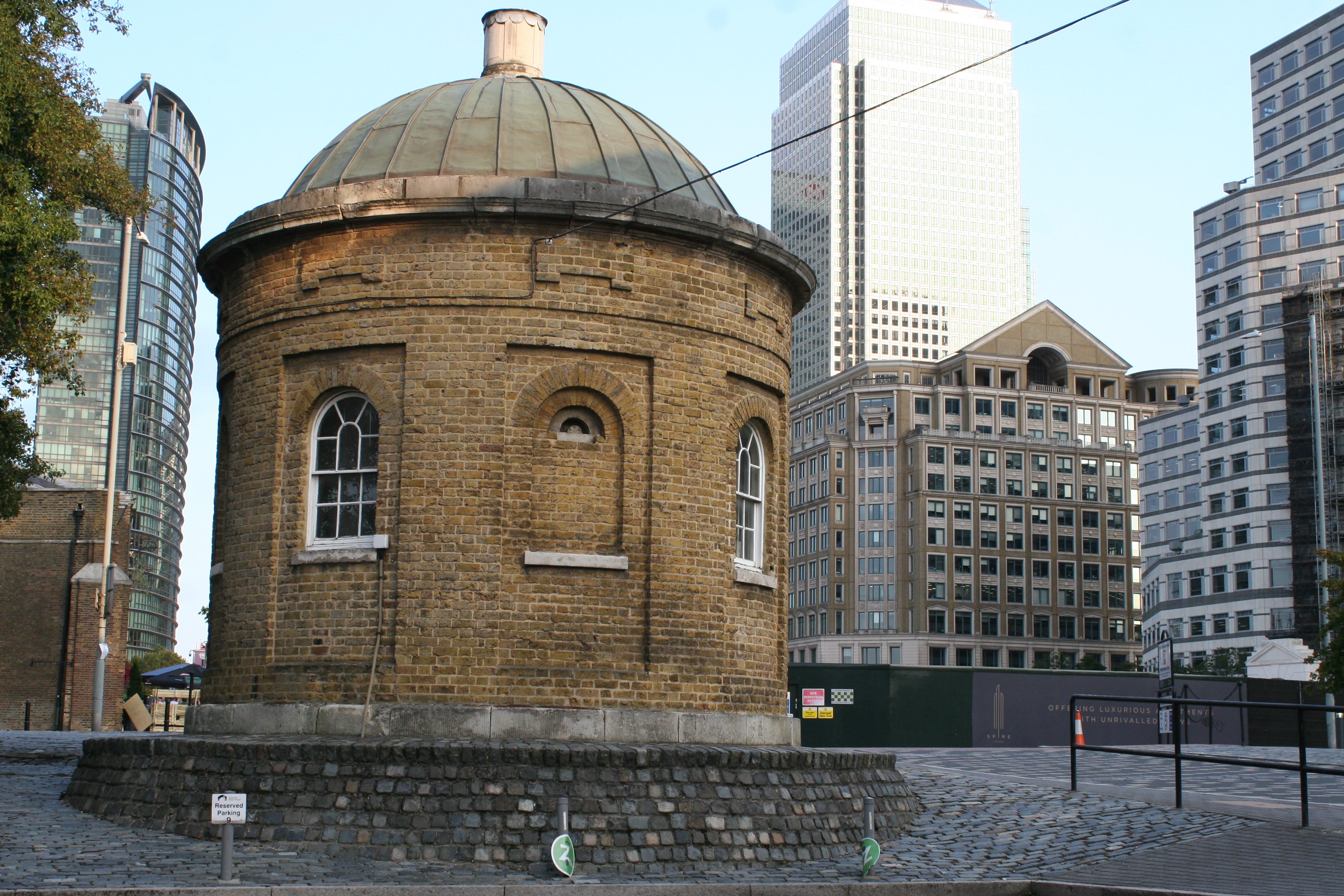 - '''노스 부두 서쪽 끝의 창고 및 일반 사무실''': 원래 9개의 창고가 웨스트 인디아 독 로드의 노스 부두 서쪽 끝에 1800–04년에 건설되었다. 제2차 세계 대전 폭격에서 단 두 개의 창고만 살아남았다.[73][74]
