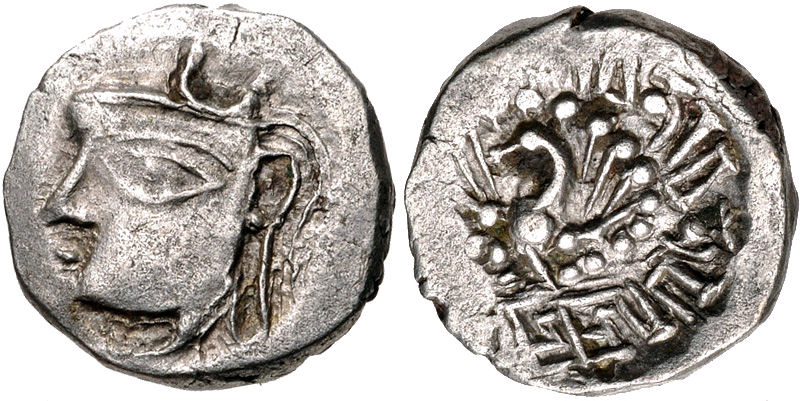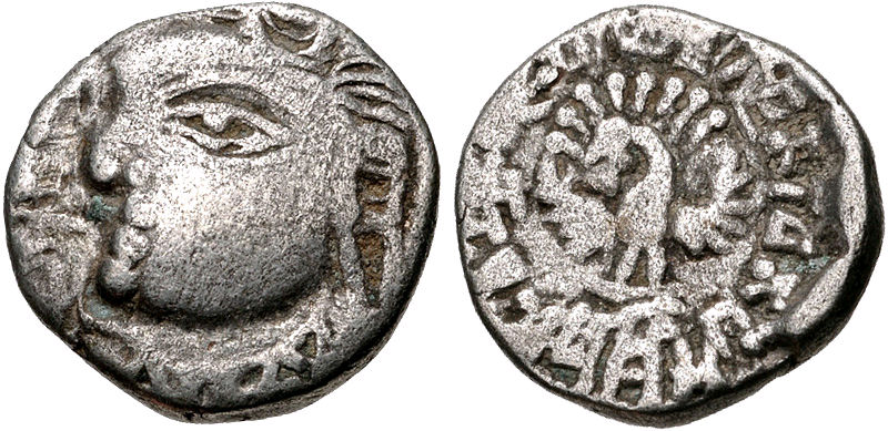 CNG: eAuction 329. INDIA, Post-Gupta (Ganges Valley). Vardhanas of Thanesar and Kanauj. Harshavardhana. Circa AD 606-647. AR Drachm (13mm, 2.28 g, 1h).