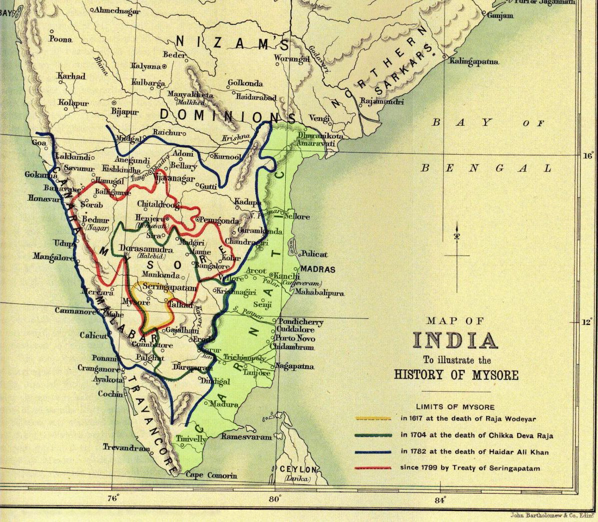 마이소르 왕국이 부상하면서 1767년 이후 영국과 마이소르 왕국 간의 마이소르 전쟁이 발발했고, 프랑스는 하이데르 알리와 그의 아들 티푸 술탄과 연합하여 영국에 대항하려 했다.