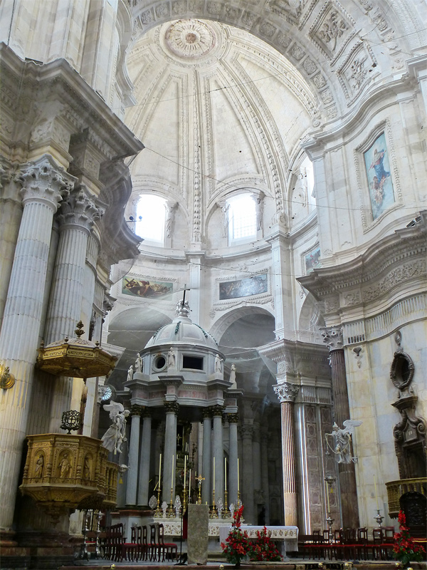 카디스 대성당 내부는 웅장하고 화려하게 장식되어 있다.