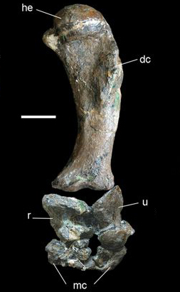 앞다리는 티라노사우루스과를 포함한 다른 대형 육식 공룡보다 비례적으로 짧았다. 팔뚝은 위팔의 1/4 크기였고, 손목뼈 없이 중수골이 팔뚝과 직접 연결되었다. 손에는 4개의 손가락이 있었지만, 가운데 2개만 손가락 뼈로 끝났고, 4번째 손가락은 뼈 조각 같은 중수골로 구성되어 있었다. 손가락은 융합되어 움직일 수 없었고 발톱이 없었을 가능성이 있다. 2009년 연구에 따르면 아벨리사우루스과의 팔은 흔적기관으로, 신경 섬유가 현생 에뮤와 키위새처럼 줄어들었다.