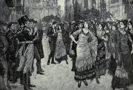 1875년3월 3일에 초연된 오페라 《카르멘》은 1820년스페인의 세비야를 배경으로 한다.[120]프로스페르 메리메의 소설 《카르멘》을 바탕으로, 앙리 메이야크|Henri Meilhac프랑스어와 뤼도비크 알레비|Ludovic Halévy프랑스어가 리브레토 (대본)를 쓰고 조르주 비제가 작곡한 4막짜리 오페라이다.[120]
