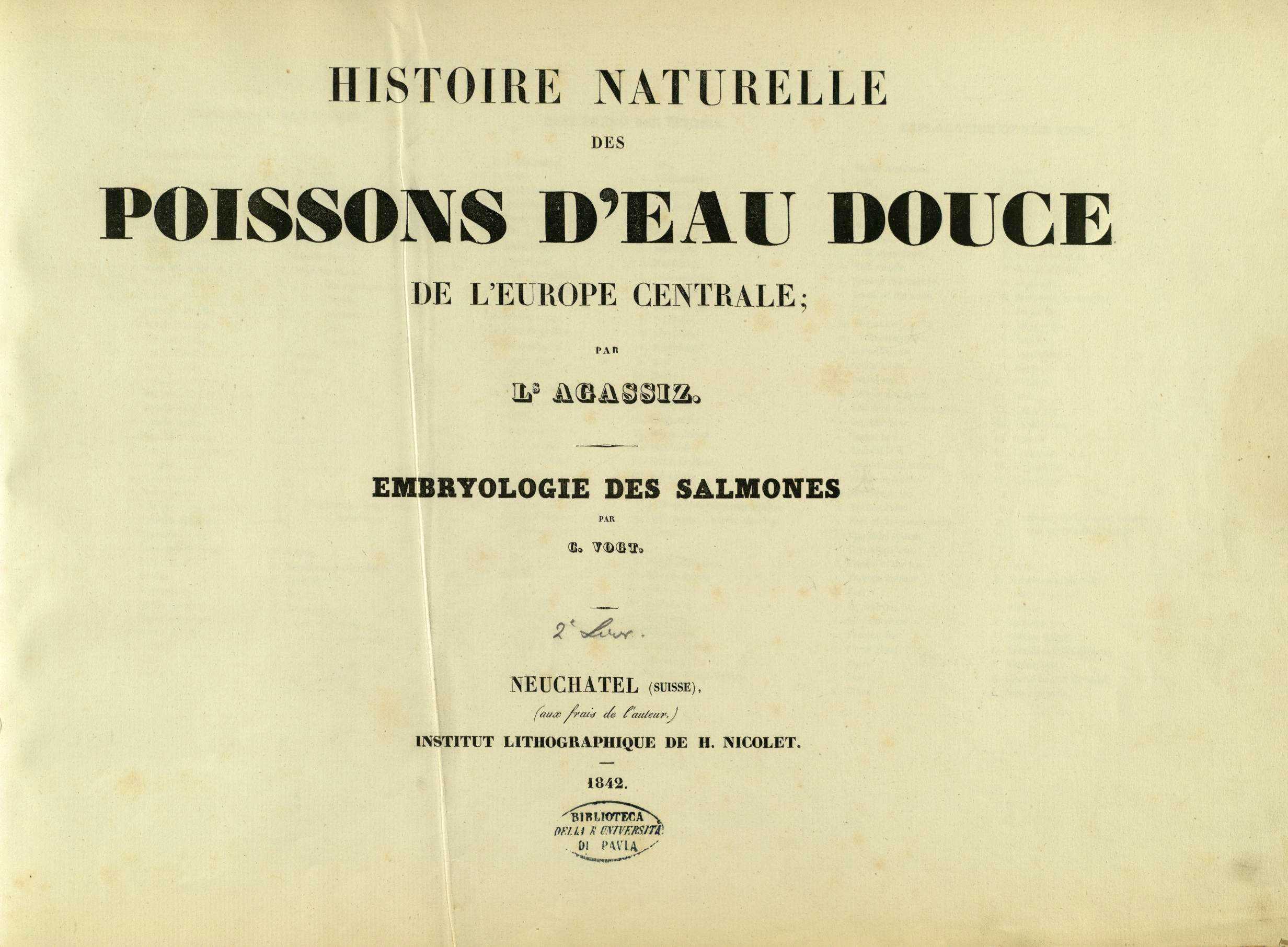 • Histoire naturelle des poissons d'eau douce de l'Europe centrale|중앙 유럽 담수어 자연사fra (1842년): 뇌샤텔에서 Nicolet 출판사가 프랑스어로 출판했다. [https://gutenberg.beic.it/webclient/DeliveryManager?pid=12331720 (온라인 열람)]