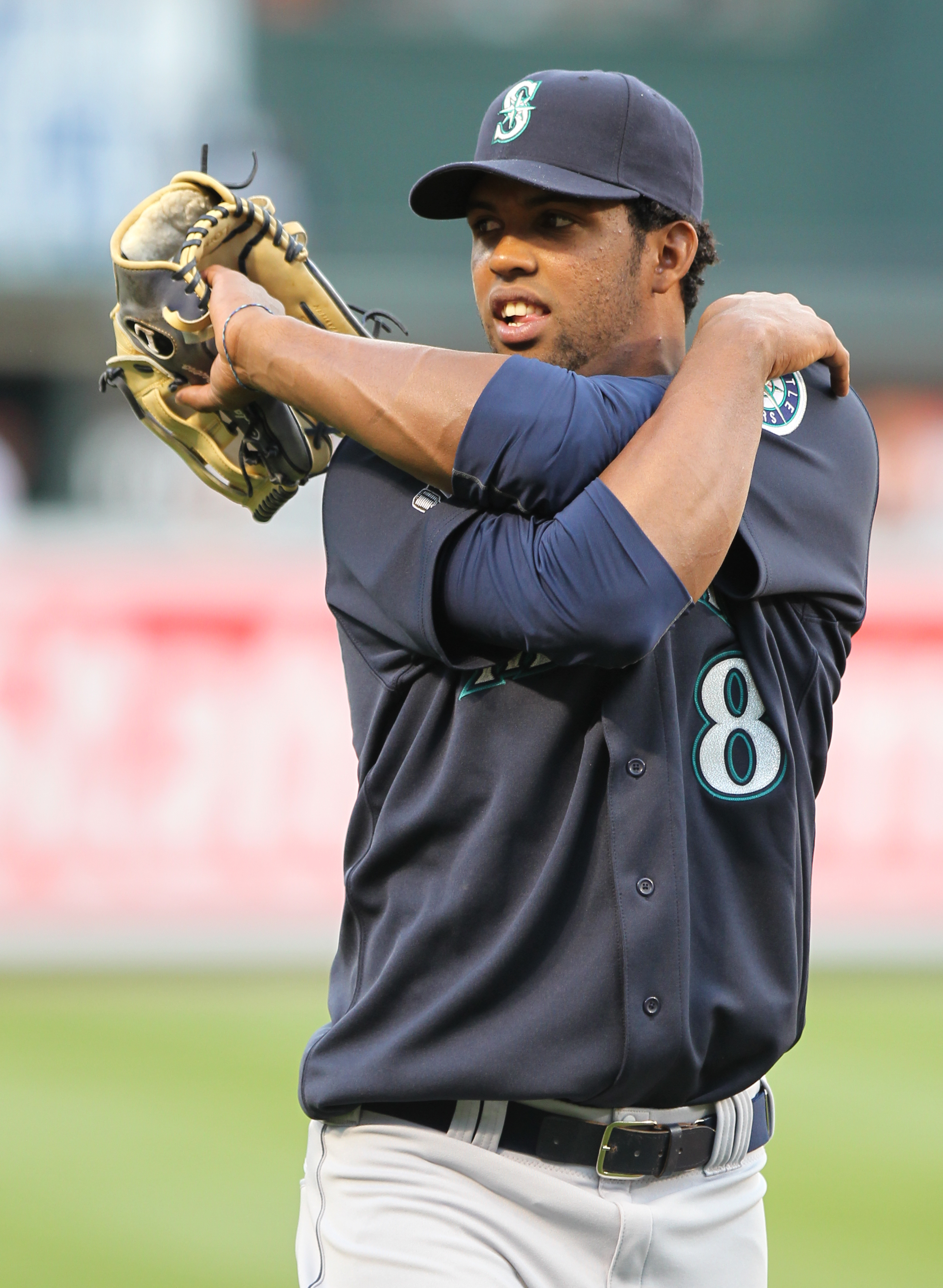 2011년 시애틀 매리너스에 입단하였다. 4월 19일 디트로이트 타이거스와의 경기에서 이치로를 대신하여 수비 요원(우익수)으로 메이저 리그에 데뷔했다.[21] 5월 17일 미네소타 트윈스와의 경기에서는 우익수 폴대를 스치는 홈런을 날리기도 했다. 하지만, 타율은 저조했고, 7월 17일 마이크 카프와 교체되며 AAA급 타코마 레이니어스로 강등되었다. AAA급 타코마에서는 타율 .317, 13홈런, 47타점을 기록했다.2014년 1월 16일에 지명 할당(DFA)되었다. 1월 29일 트레이드를 통해 캔자스시티 로열스로 이적했다.[21] 3월 1일 로열스와 504250USD의 1년 계약에 합의했으나,[22][23] 3월 25일 DFA 처리되었고, 4월 2일 산하 AAA급 오마하 스톰체서스로 강등되었다. AAA급 오마하에서는 104경기에 출전하여 타율 .266, 30홈런, 76타점, 11도루를 기록했다. 9월 1일 로열스와 다시 메이저 계약을 맺었다.[24] 승격 후 4경기에 출전하여 타율 .222, 1타점을 기록했다. 오프 시즌인 12월 19일 FA(자유 계약 선수)가 되었다.[25]