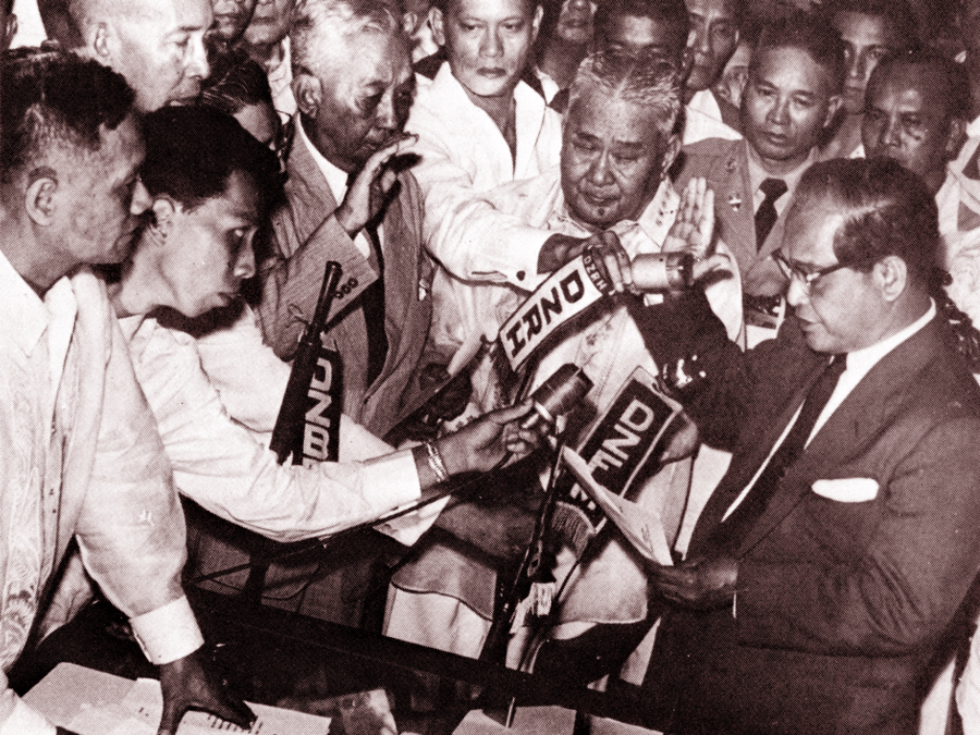1957년 3월 17일, 라몬 막사이사이 대통령이 비행기 사고로 갑작스럽게 사망하자 대통령직을 승계했다.[30]