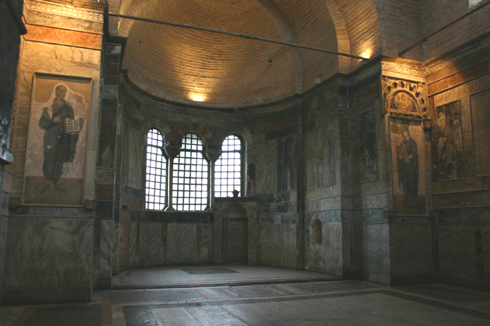 - 기념비적인 규모의 ''데에시스'' 모자이크: 그리스도와 성모 마리아(세례자 요한 없이), 그 아래 두 명의 초기 기증자인 이사악 콤네노스와 "몽골의 귀부인"으로 묘사된 수녀.