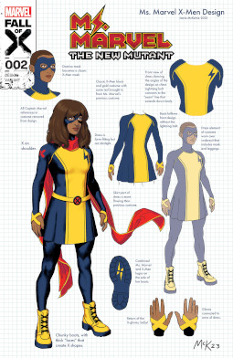 그 달 말, 카말라는 돌연변이로서 그리고 엑스맨의 일원으로서 카말라의 새로운 지위를 다루는 4부작 한정 시리즈인 ''Ms. Marvel: The New Mutant''에 출연했다. 이 시리즈는 MCU에서 카말라 역을 맡은 이만 벨라니와 ''다크 웹: 미즈 마블''과 ''미즈 마블'' 쇼의 에피소드를 쓴 사비르 피르자다가 집필했으며, 카를로스 고메즈와 아담 고햄이 그림을 그렸다.[141][33] 맥켈비는 카말라의 의상을 업데이트하여 "그녀의 새로 발견된 돌연변이 정체성을 강조했으며, 캐롤 댄버스로 거슬러 올라가는 전통적인 미즈 마블 번개 모양을 X-Men 로고로 대체했다"고 한다.[141] ''폴리곤''은 카말라의 "원래 디자이너가 디자인한 새로운 노란색과 파란색 의상"이 "그녀의 새로운 X-Men 기원에 어울린다"고 언급했다.[33] 이 미니시리즈에서 카말라는 엑스맨에 의해 엠파이어 스테이트 대학교 (ESU)에서 오키스가 후원하는 여름 프로그램에 학생으로 잠입하는 비밀 임무를 수행한다. 미즈 마블의 엑스맨과의 연계와 그녀의 돌연변이 신분이 드러나면서 그녀에 대한 반돌연변이 반발이 일어났다.[142] 카말라는 또한 ''엑스맨'' (vol. 6) #26 (2023년 9월)부터 주요 연재 시리즈인 ''엑스맨''에도 등장했다.[143][144][145]