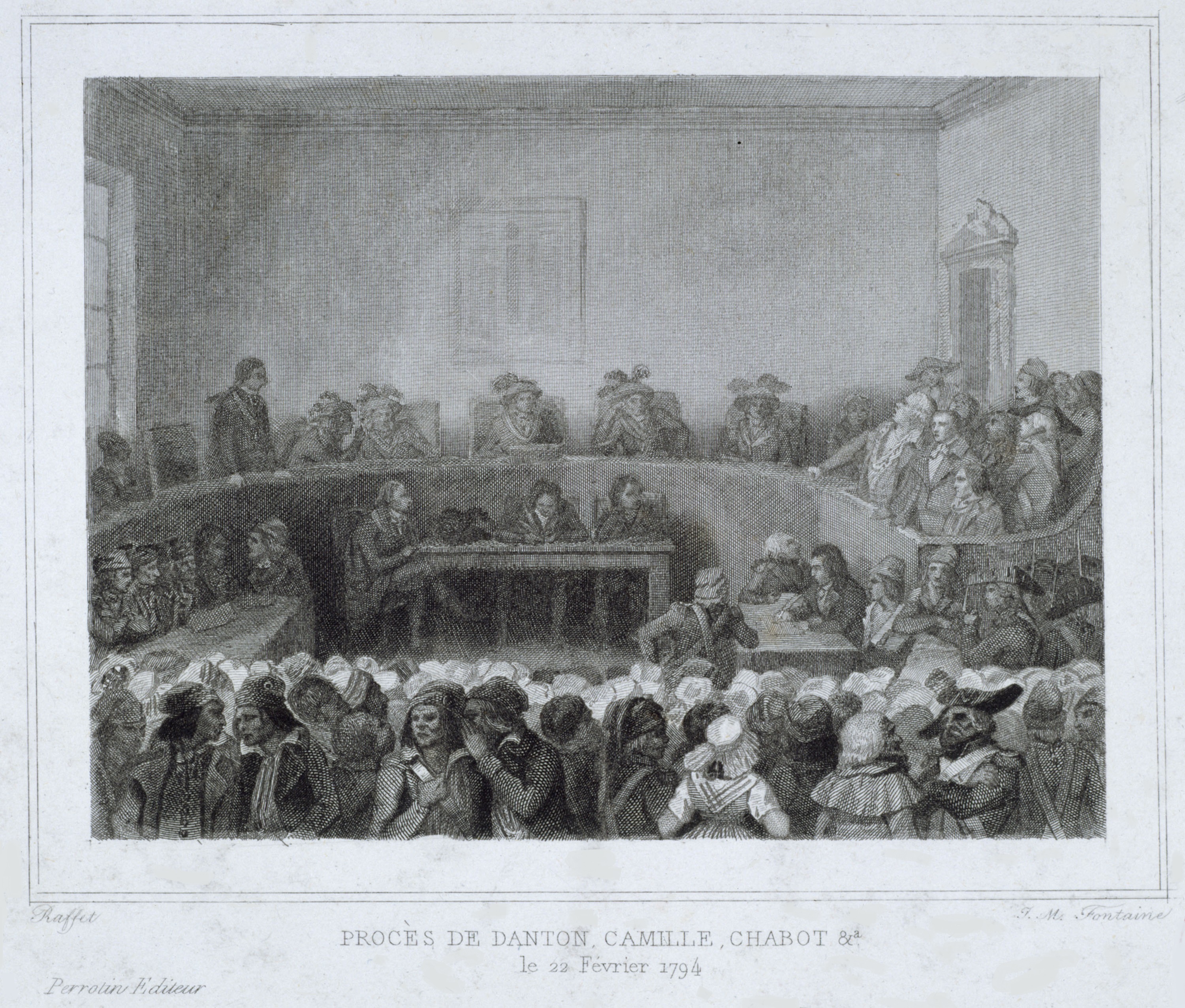 당통, 데물랭, 그리고 다른 당통파 관련자들은 4월 3일부터 5일까지 혁명 재판소에서 재판을 받았다. 이 재판은 형사 재판이라기보다는 정치적 성격이 강했으며, 매우 불규칙하게 진행되었다. 데물랭은 이름과 나이를 묻는 질문에 "브누아 카미유 데물랭, 33세. 이는 예수와 같은 나이로, 애국자에게는 중요한 나이이다."라고 답했다고 전해진다.[27] 피고인들은 국민 공회의 법령에 의해 스스로를 변호할 권리조차 금지당했다. 이러한 절차상의 문제와 더불어 혼란스럽고 종종 관련 없는 고발들(예를 들어 당통이 브뤼셀에서 활동할 당시 수십만 리브르 상당의 식탁 린넨을 실은 마차를 빼돌렸다는 주장[28]), 그리고 검사 앙투안 캥탱 푸키에-탱빌(데물랭의 사촌)이 배심원들에게 가한 압력은 유죄 판결을 이끌어내는 데 결정적인 역할을 했다. 또한 피고인들은 증인 소환을 요청했으나 거부당했으며, 데물랭의 경우 로베스피에르를 포함한 여러 인물을 증인으로 요청했다. 판결은 피고인들이 방청객들의 소란을 막는다는 명분으로 법정에서 퇴장당한 상태에서 내려졌다. 사형은 판결 당일 집행되기로 결정되었다. 데물랭은 프랑스 동인도 회사 사건과 같은 부패나 공금 횡령과는 직접적인 관련이 없었음에도 불구하고 공범으로 몰렸다.[47]