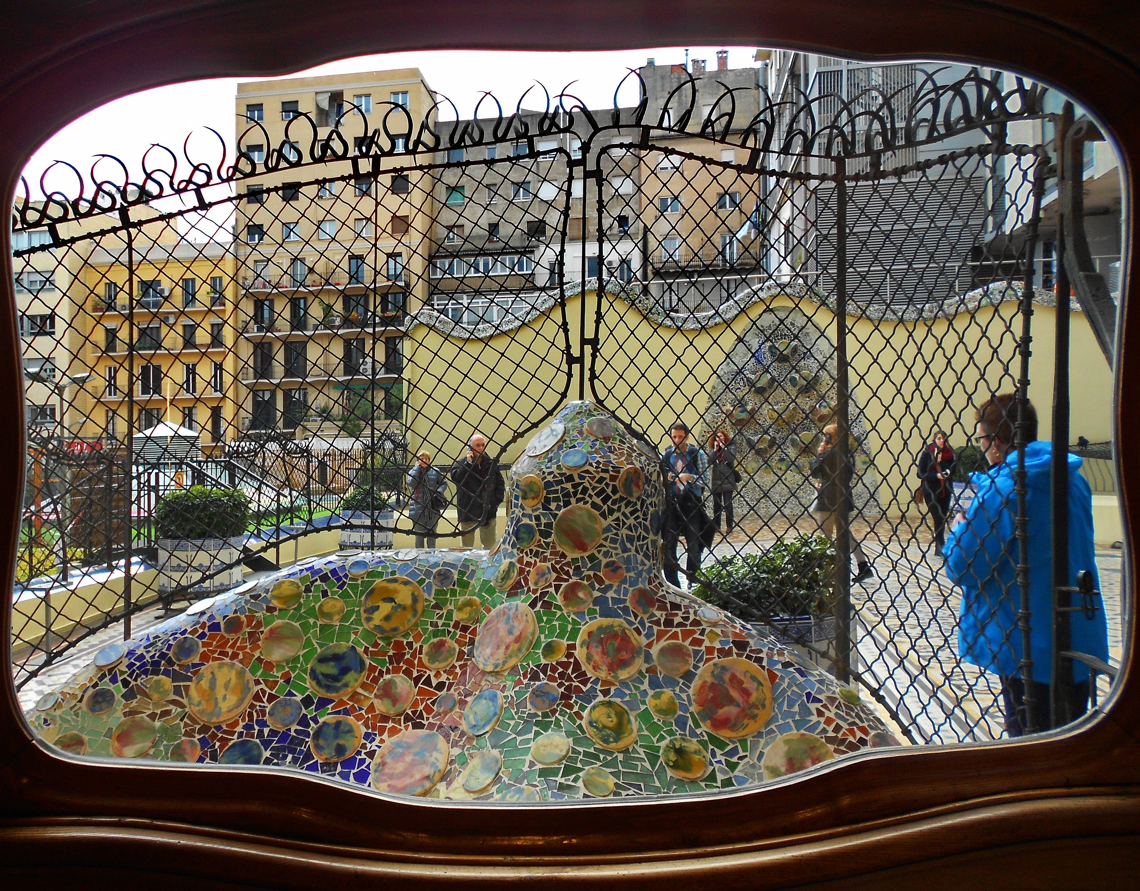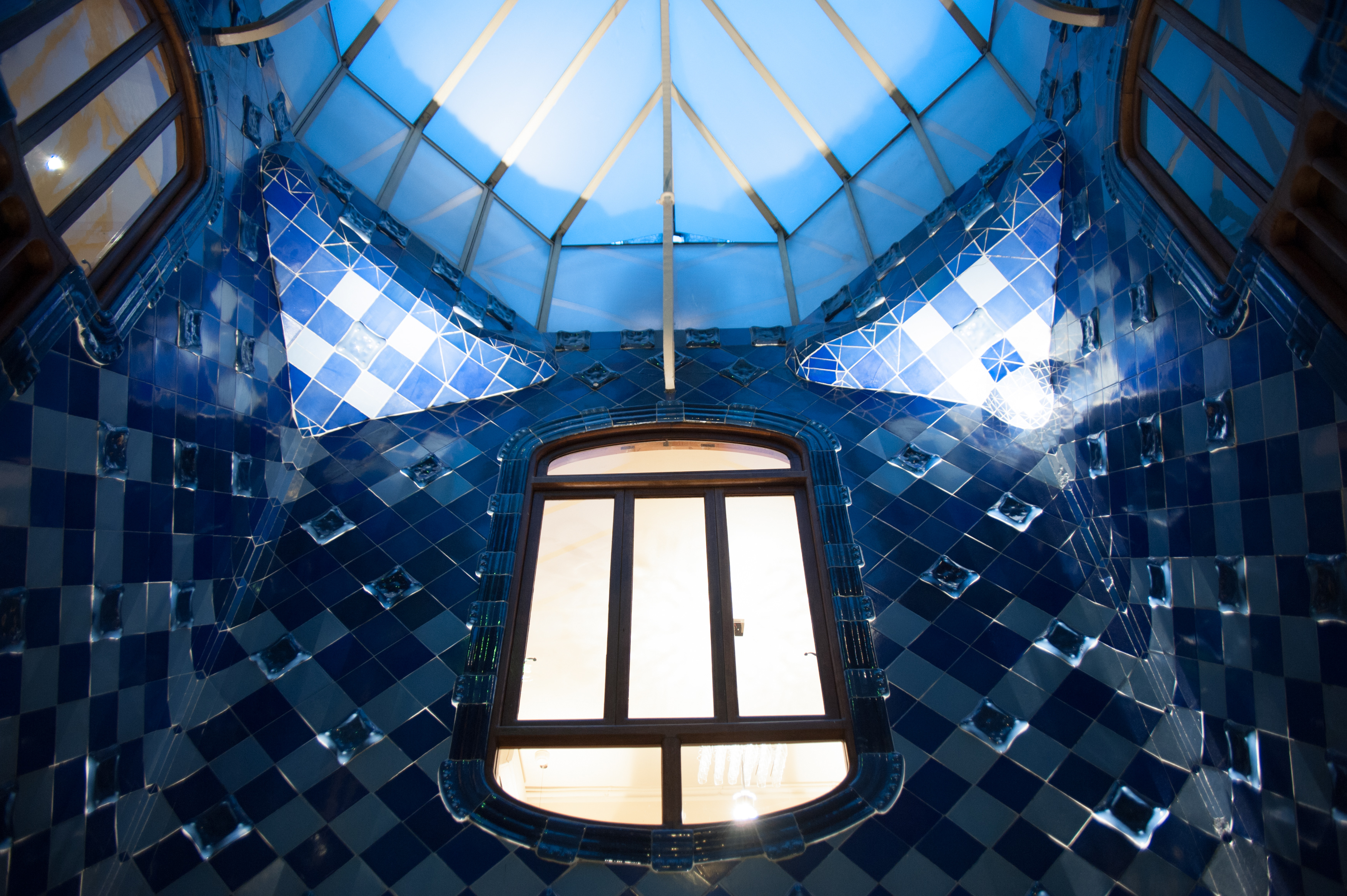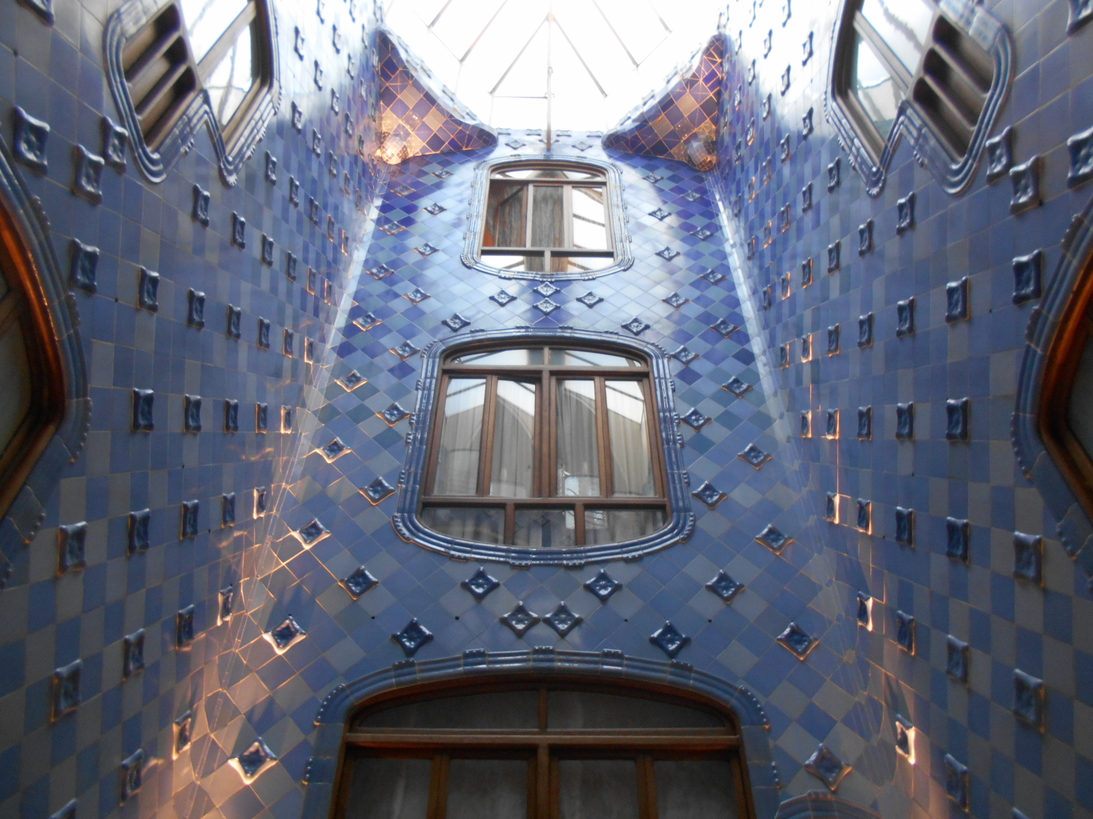 중정; 가우디는 바트요에게 건물의 중앙 우물을 확장하여 빛을 들여오도록 설득했고, 재건축은 하지 않았다.