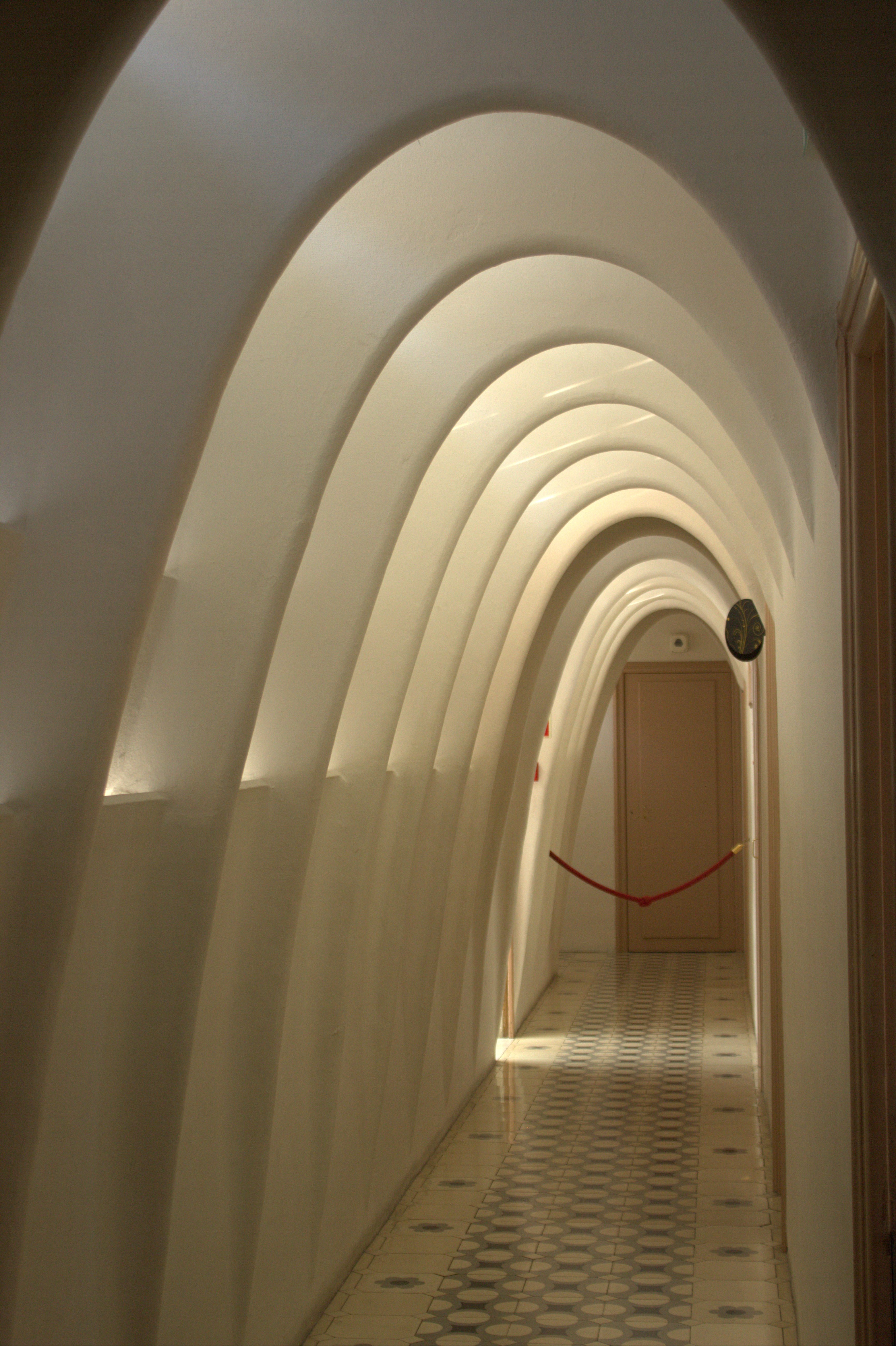 가우디는 파사드, 메인 살롱, 중정의 채광에 가장 공을 들였고, 5층을 증축했다. 1969년 발견된 초기 스케치는 불규칙한 굴곡 형태의 돔을 씌우려던 계획을 보여주지만, 최종적으로 용 형태의 아치형 지붕으로 바뀌었다.