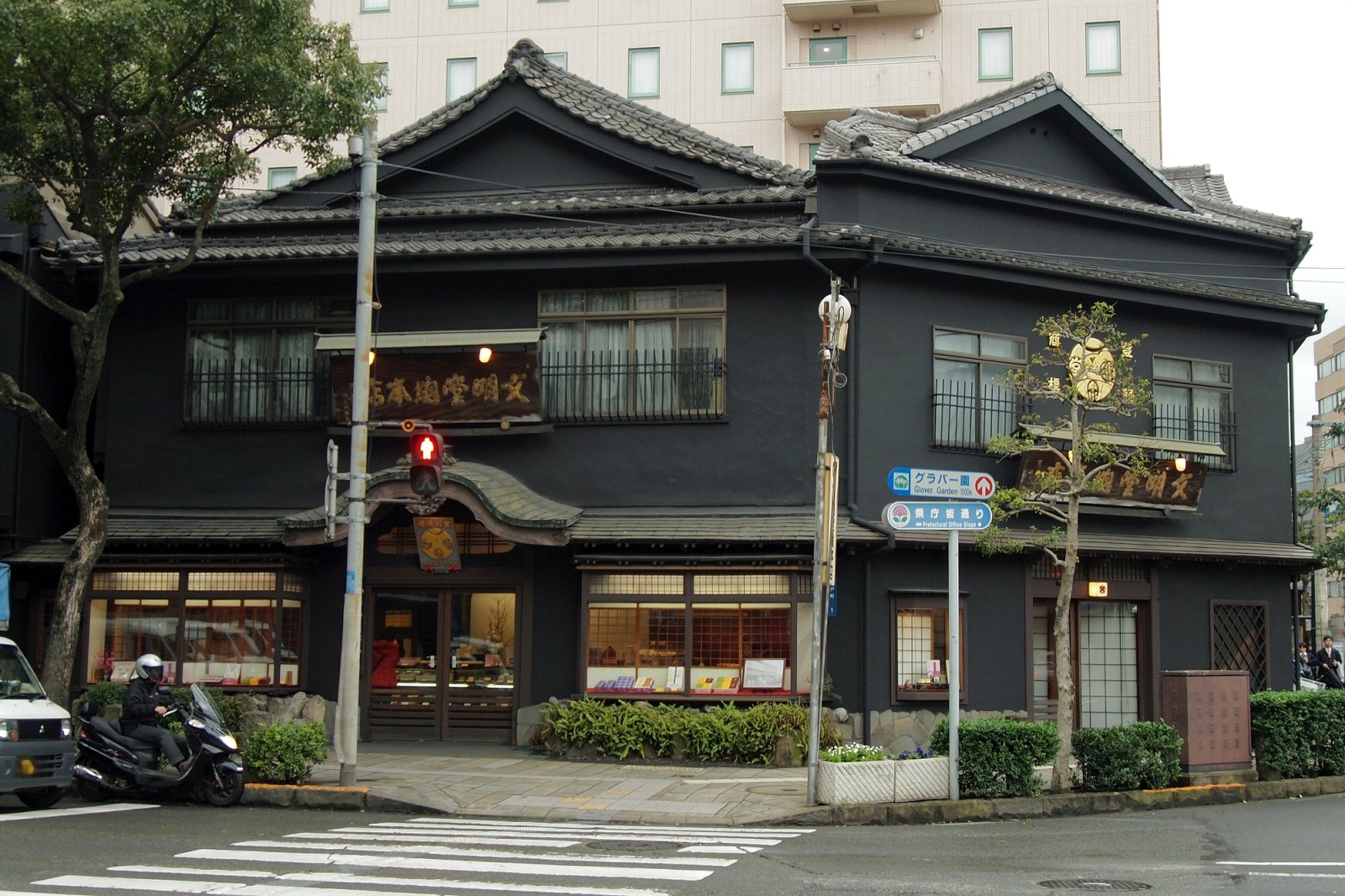 1900년 (메이지 33년) | 분메이도 총본점 | 나가사키현 나가사키시 | 전쟁 전에 개설한 도쿄 (아자부), 고베, 요코하마, 신주쿠, 긴소(은장, 銀装), 긴자 각 지점을 전쟁 후에 경영 분리했다. (분메이도 참조). "카스테라 제일, 전화는 두 번째"라는 문구와 간토 지방에서는 캉캉 댄스를 추는 곰 인형의 CM으로 알려져 있다.[36] |