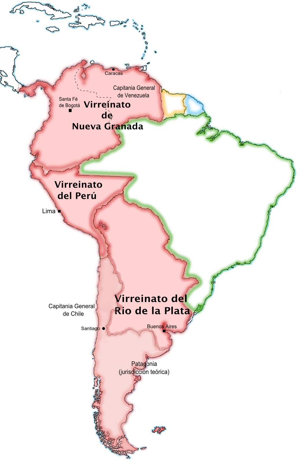 - 베네수엘라 총독령: 1777년 이후 자치령으로 병합되었다.