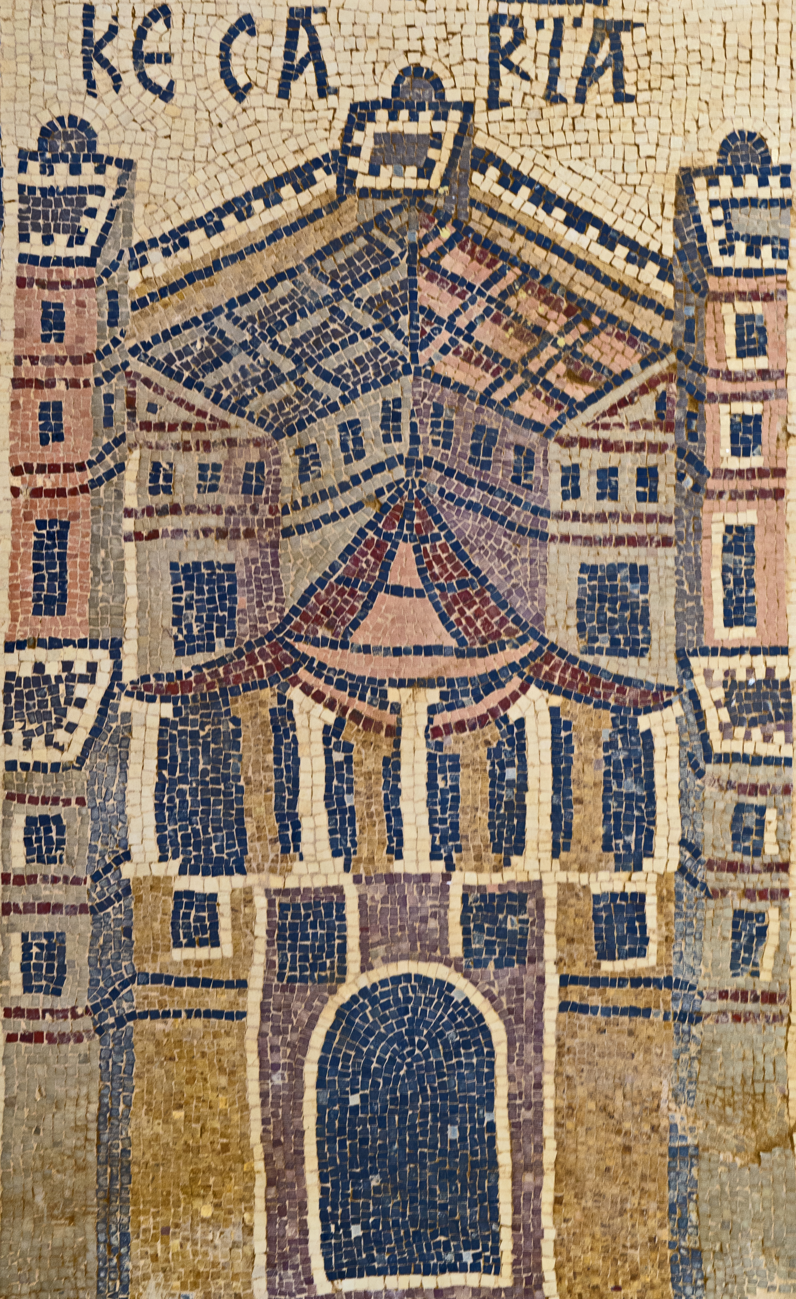 390년 비잔틴 시대 동안 카이사레아는 팔레스티나 프리마 속주의 수도가 되었다. 카이사레아는 또한 70년에 예루살렘이 파괴된 후 재건되었을 때 예루살렘을 관할하는 대교구 관할 구역이 있는 수도였다. 그러나 451년에 칼케돈 공의회는 예루살렘을 총대주교로 지정하고 카이사레아를 세 개의 하위 수도 중 첫 번째로 지정했다. 카이사레아는 5세기와 6세기 내내 속주의 수도로 남아 있었다. 이 도시는 602-628년 비잔틴-사산 전쟁 중 사산조 페르시아에 614년에 함락되었고, 625년 비잔틴 제국에 의해 재정복되었다.