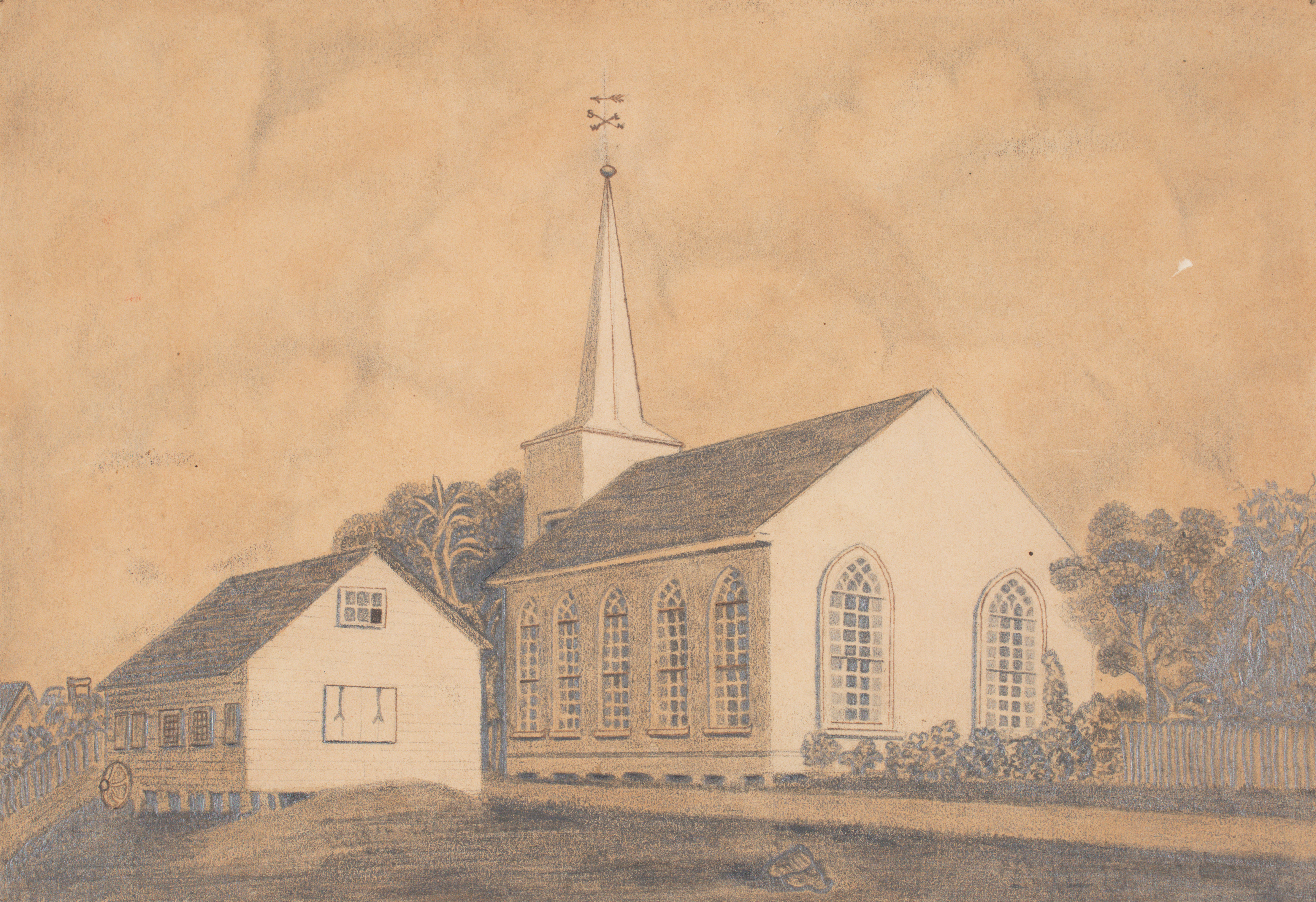 1862년 카이타이아 교회와 교실 그림