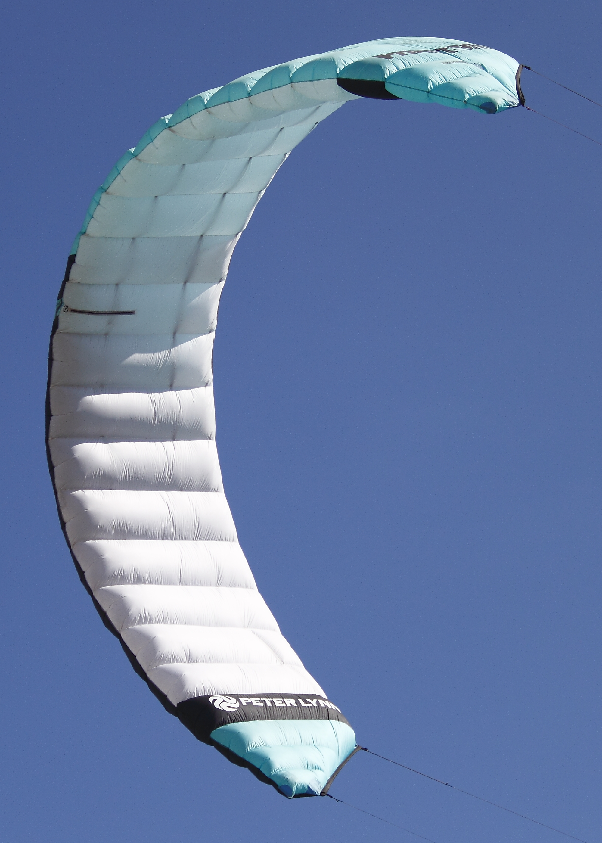 - '''플라잉 라인'''은 예측 불가능한 바람 속에서 동적 하중을 처리하면서 항력을 최소화하기 위해 작은 단면을 유지하고자 초고분자량 폴리에틸렌과 같은 강한 소재로 만들어진다. 길이는 일반적으로 7~33미터이다. 카이트보딩에서는 라인 길이 실험이 일반적이다. 라인은 라이더의 컨트롤 바를 카이트 가장자리 또는 브리들의 부착 코드를 사용하여 카이트에 연결한다. 대부분의 파워 카이트는 3, 4 또는 5라인 구성을 사용한다. 대부분의 컨트롤 바는 4개의 라인을 가지고 있으며, 2개는 대부분의 추진력을 위해, 2개는 조종과 받음각 조절을 위해 사용된다. 5번째 라인은 재발진을 돕거나, 주로 C-카이트에서 카이트의 받음각을 추가로 조정하는 데 사용된다.