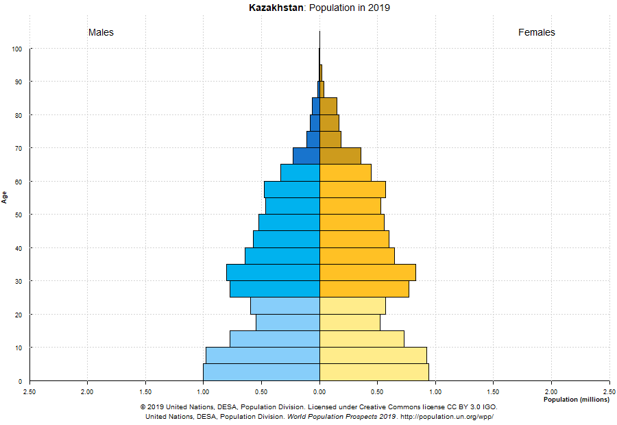 2. 2. 카자흐스탄의 인구 통계(2019년, 유엔)