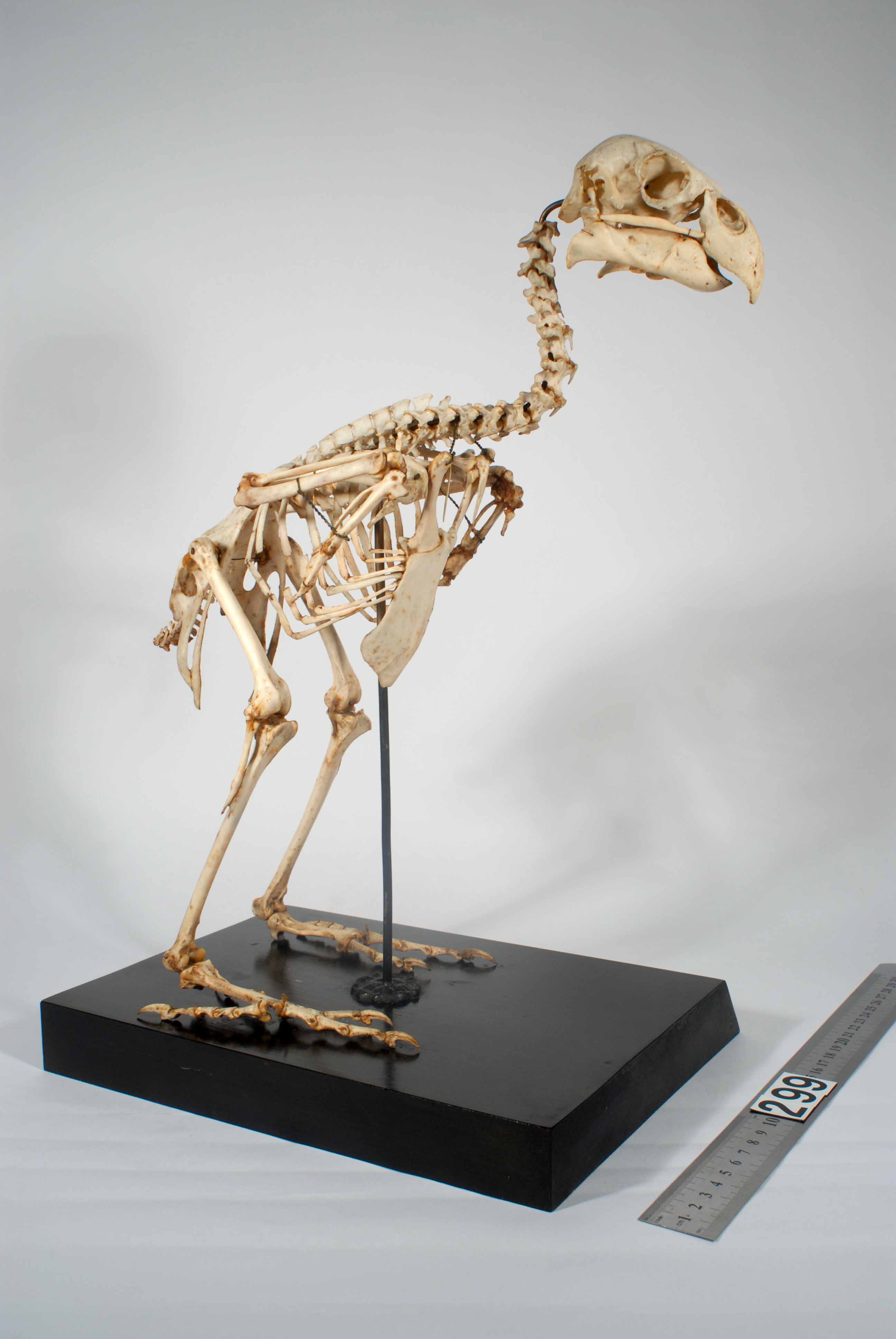 카카포의 골격은 다른 앵무새와 여러 면에서 다르며, 특히 비행 불능과 관련된 특징을 보인다. 다른 어떤 앵무새보다 날개 크기가 상대적으로 가장 작다. 날개깃은 더 짧고 둥글며 비대칭성이 적고, 깃털을 고정하는 작은 갈고리가 적다. 흉골은 작고 용골돌기가 낮게 퇴화되었으며, 외부극돌기가 짧다. 다른 비행 불능 조류처럼 쇄골이 융합되지 않고 서로 접촉하며, 쇄골과 흉골 사이의 각도가 크다. 골반은 다른 앵무새보다 크다. 다리와 날개의 몸통 쪽 뼈는 불균형적으로 길고, 끝 쪽 뼈는 불균형적으로 짧다.[30] 비행에 사용되는 대흉근과 견갑상근과 같은 근육도 크게 감소했다.[30]