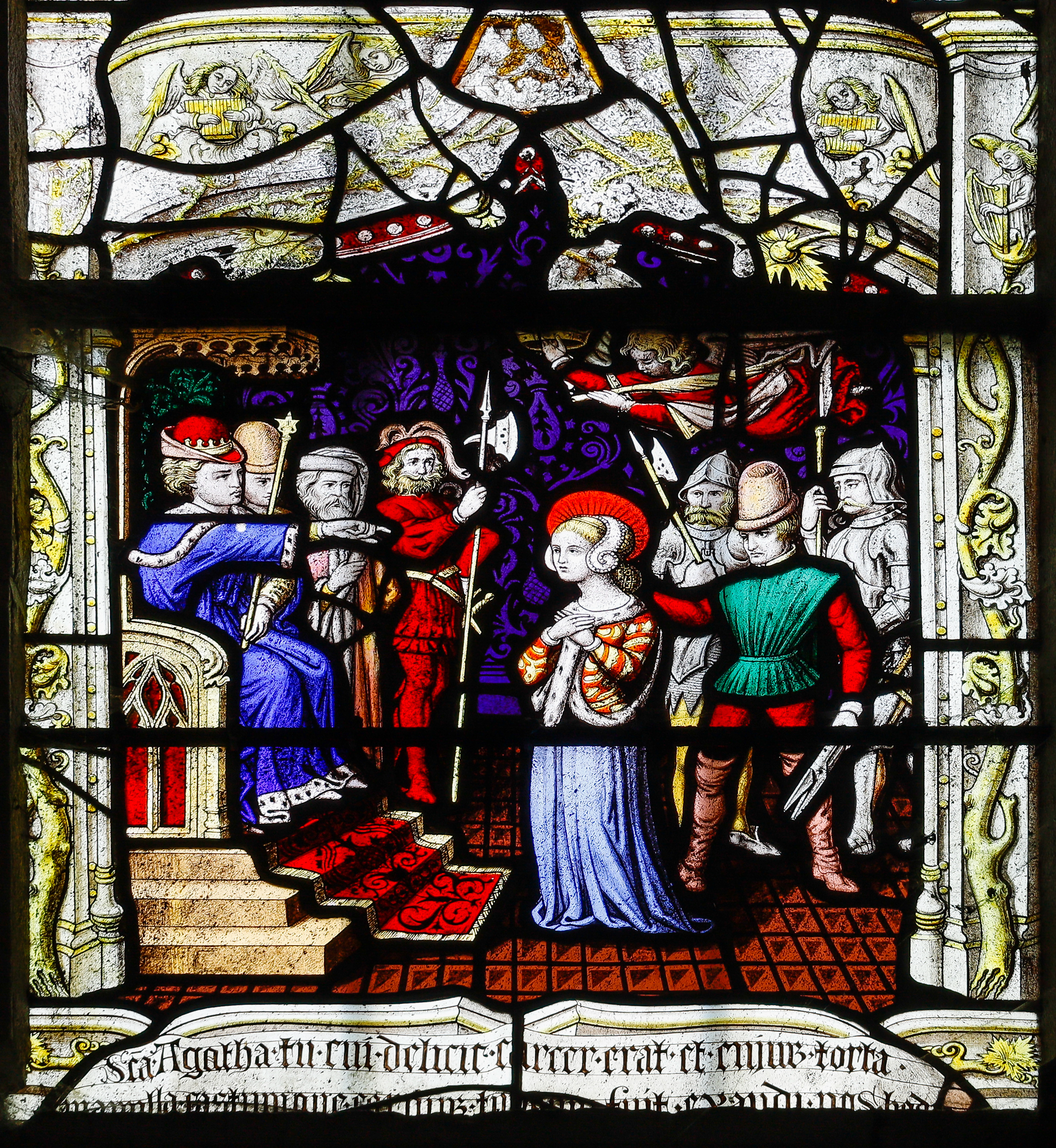평소 아가타의 미모를 눈여겨보던 집정관 퀸티아누스는 그녀에게 청혼했지만, 아가타는 이를 단호하게 거절했다. 이에 앙심을 품은 퀸티아누스는 아가타가 기독교를 믿는다는 것을 알고 그녀를 체포하여 법정에 세웠다. 퀸티아누스는 배교하지 않으면 처벌하겠다고 위협했지만, 아가타는 굴하지 않고 신앙을 지켰다.[19]