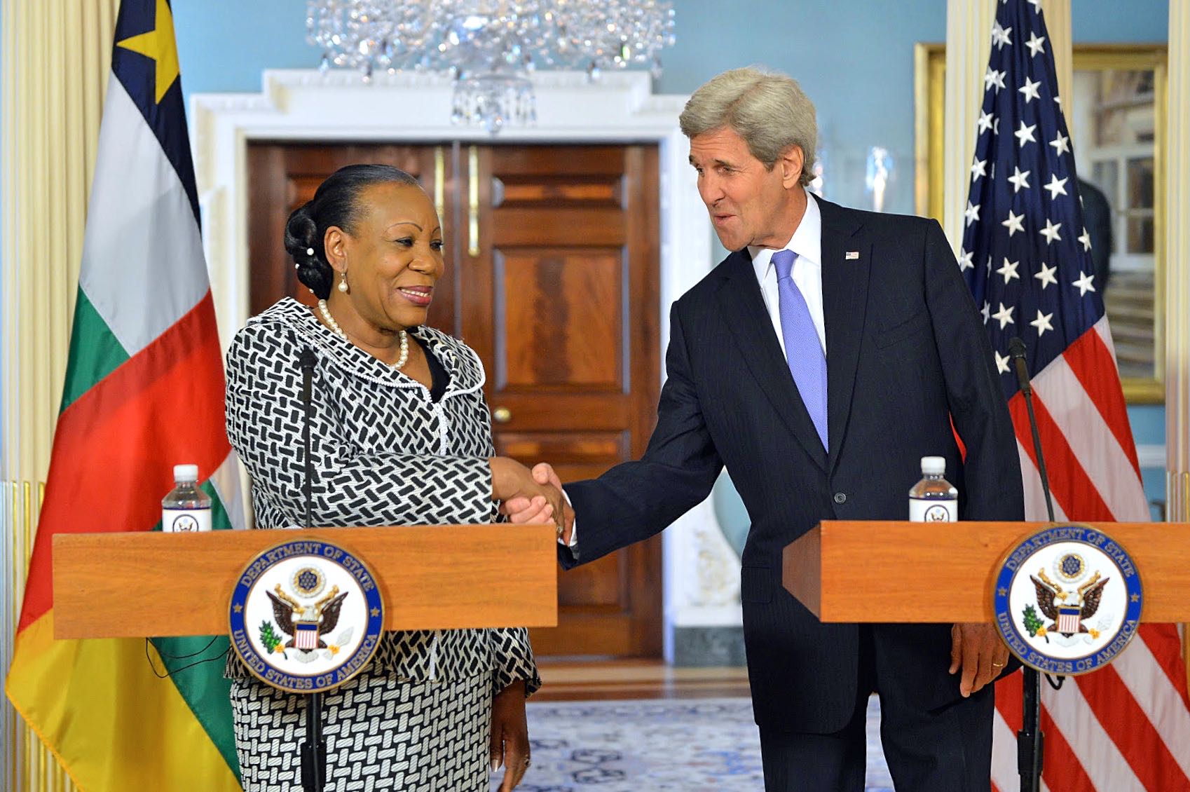 삼바 판자는 2014년 1월 23일에 대통령으로 취임했으며,[20] 다음 선거가 2015년으로 예정될 때까지 임기를 수행했다.[16] 취임식 날, 수도 외곽에서 약 16명이 내전으로 사망했지만, 그녀의 대통령 임명은 강제로 권력을 잡기보다는 국민의 지지를 얻어 선택되었기 때문에 관찰자와 외국인 투자자들에게 긍정적인 변화로 여겨졌다.[16]