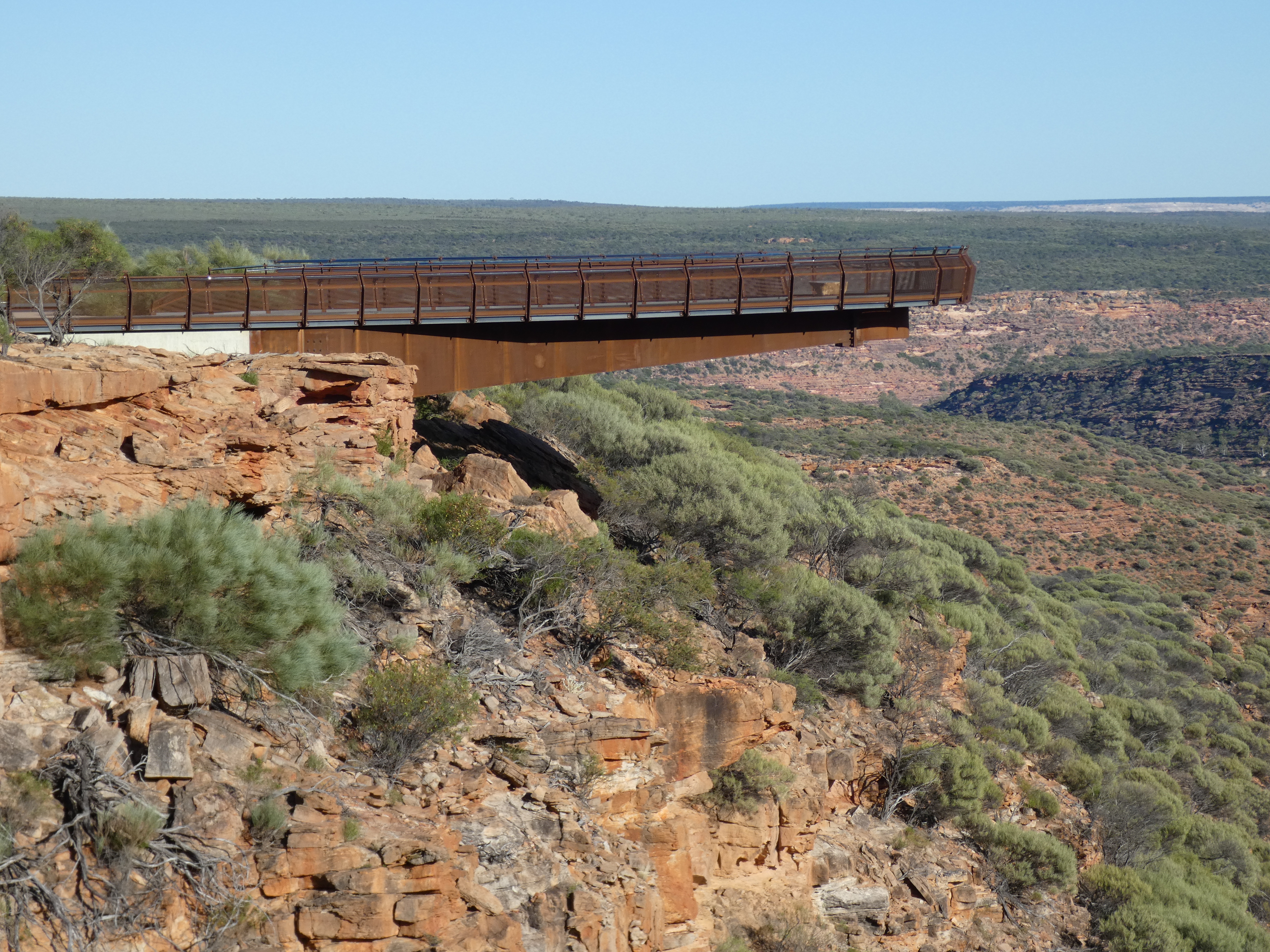 칼바리 국립공원은 오스트레일리아 서부 칼바리 마을 동쪽에 위치한 국립공원이다. 붉고 흰 줄무늬의 텀블라구다 사암 지형, 머치슨 강 하류와 협곡, 해안 절벽을 포함하며, 자연 다리와 해식 기둥과 같은 지형을 볼 수 있다. 지중해성 기후와 스텝 기후의 영향을 받으며, 800종 이상의 야생화가 서식하고 200종 이상의 동물이 기록되어 있다. 관광, 보트 타기, 낚시, 부시워킹 등 다양한 활동이 가능하며, 칼바리 스카이워크에서 머치슨 강 협곡의 전망을 감상할 수 있다. 주요 명소로는 해안 지역의 레드 블러프, 내륙 지역의 네이처스 윈도우 등이 있다.