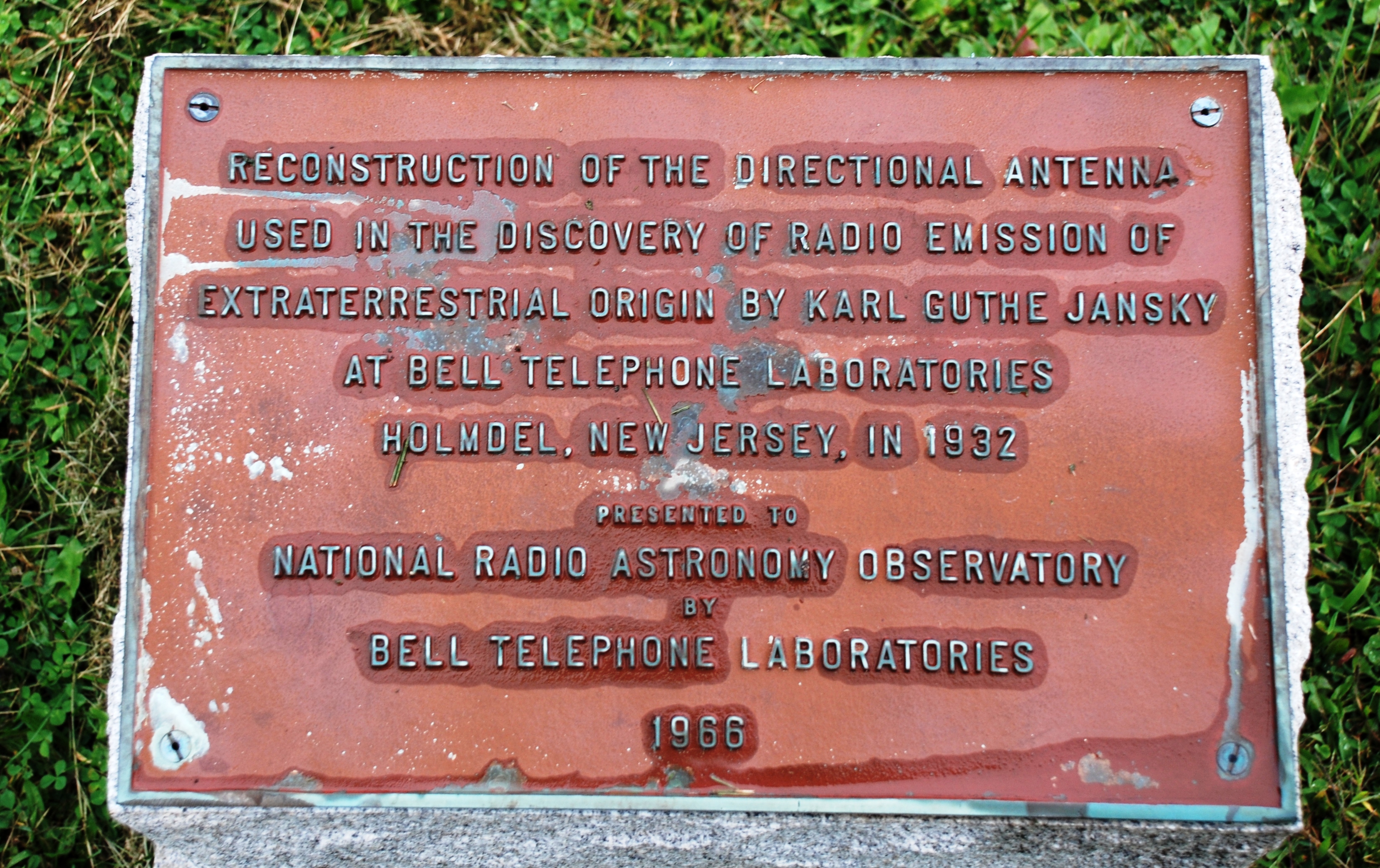 1998년, 뉴저지주 홀름델 101 크라포드 코너 로드(현재 벨 연구소 홀름델 단지)에 있는 잰스키 안테나의 원래 부지()는 토니 타이슨과 로버트 윌슨에 의해 확인되었으며, 루슨트 테크놀로지스는 기념비와 명판을 설치하여 업적을 기렸다.[17] 기념비는 안테나를 양식화한 조각상이며, 1932년 9월 16일 오후 7시 10분에 잰스키 안테나가 은하수의 중심과 일치하여 가장 큰 신호를 발생시킨 순간을 기준으로 방향이 정해졌다.[18]