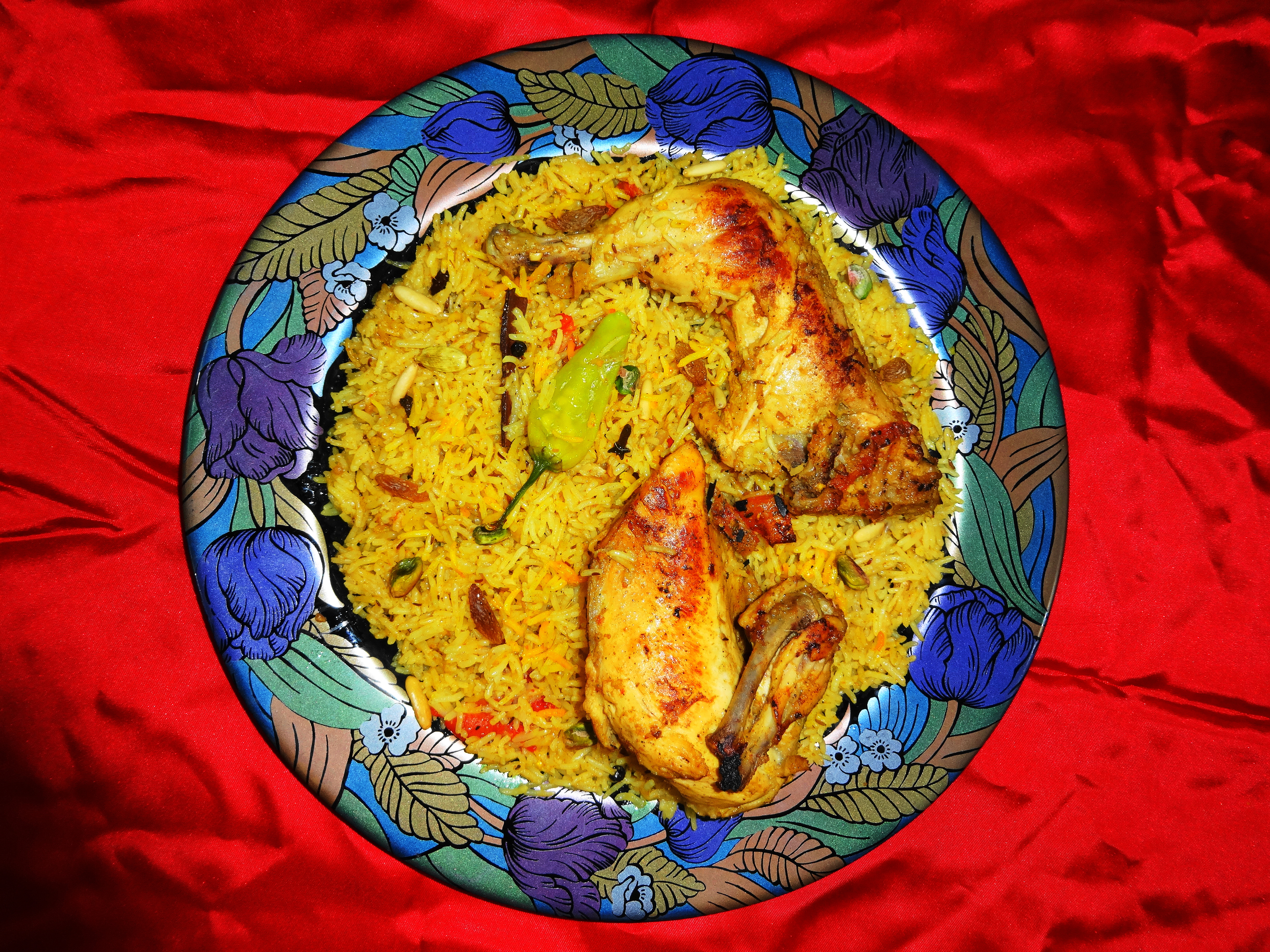 주요 재료는 고기로, 닭고기, 염소고기, 양고기, 낙타, 쇠고기, 생선, 새우 등을 쓴다. 향신료, 쌀, 고기는 아몬드, 잣, 땅콩, 양파, 건포도 등으로 보충할 수 있다.[5]