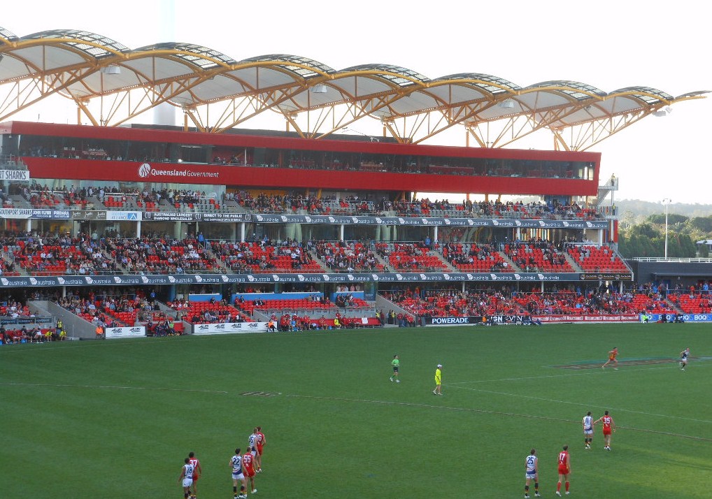 골드코스트 선스는 2011년 2011년 AFL 시즌 10라운드인 2011년 5월 28일 토요일에 재건축된 경기장에서 첫 경기를 치렀다.[23][37][38] 선스는 질롱과의 경기에서 66점 차로 패했다. 2010년 우승팀인 콜링우드와의 18라운드 경기는 당시 기록인 23,302명의 관중을 끌어모았으며, 경기일 두 달 전에 매진되었다.[39] 2012년 8월 11일 토요일, 선스는 경기장에서 첫 승리를 거두며 그레이터 웨스턴 시드니를 30점 차로 꺾었다.