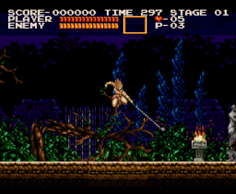 D-pad를 사용하여 플레이어는 시몬의 채찍으로 아래에 있는 적을 대각선으로 공격할 수 있습니다.