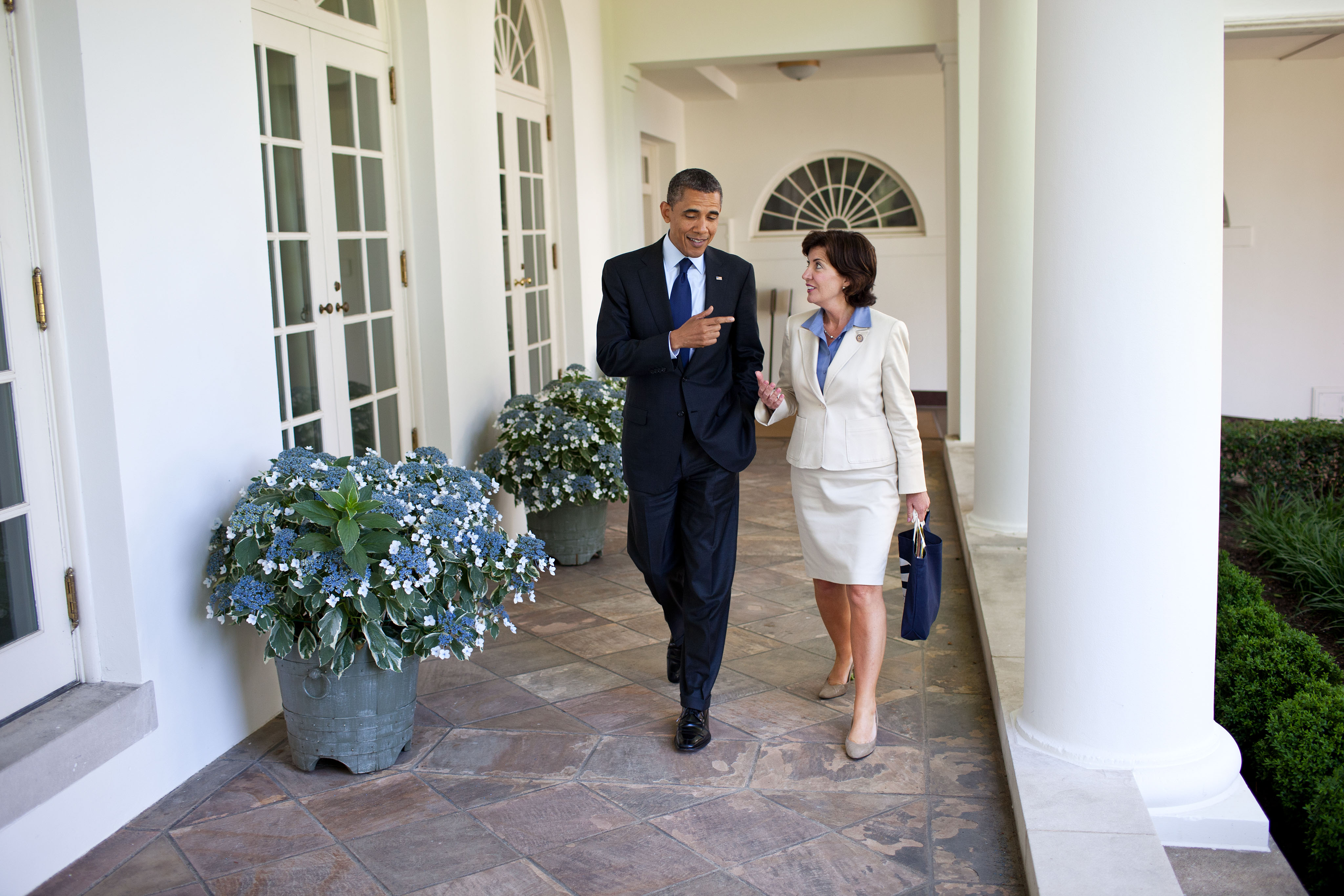 2011년 뉴욕 제26선거구 선거에서 당선된 후 버락 오바마 대통령과 함께 있는 호컬