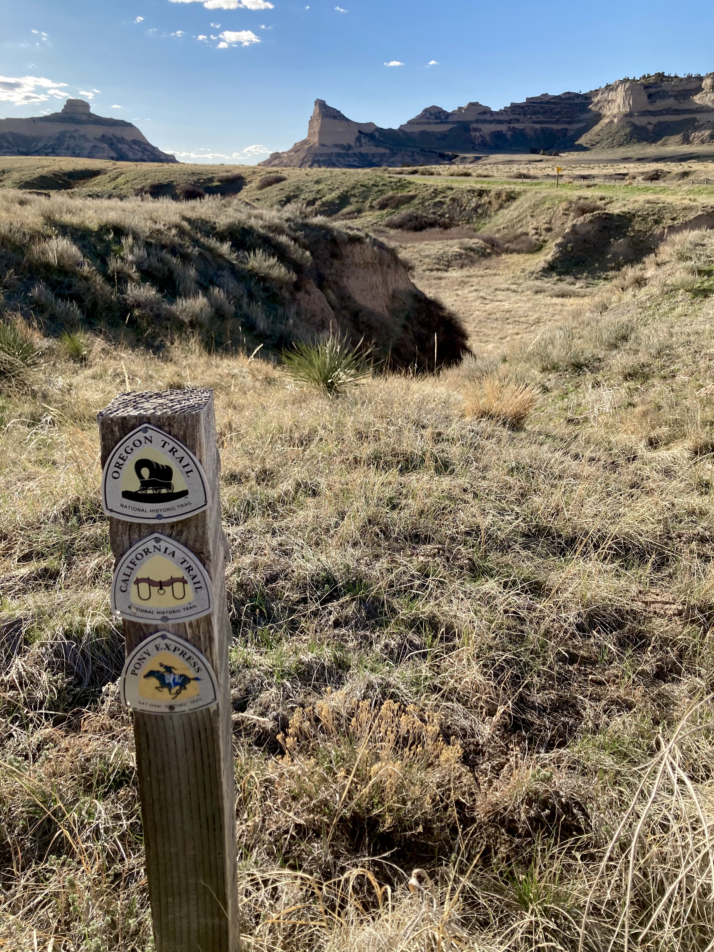 플랫 강 남쪽을 여행하는 사람들은 사우스 플랫 강을 건너 (건기에는 페리 없이 건널 수 있는 경우도 있었다) 노스 플랫 강을 따라 포트 라라미까지 계속 이동했다. 사우스 플랫 강을 건너면, 윈드리스 언덕을 따라 가파르게 내려가는 애쉬 할로우를 만났다. 며칠 더 가면 코트하우스 록과 Chimney Rock영어을 볼수 있다.[53] 그후에 캐슬 록, 마지막으로 스코츠 블러프를 만났다.[53] 1852년 이전에는 북쪽에 있던 사람들이 노스 플랫 강을 건너 남쪽으로 가서 포트 라라미로 갔다.