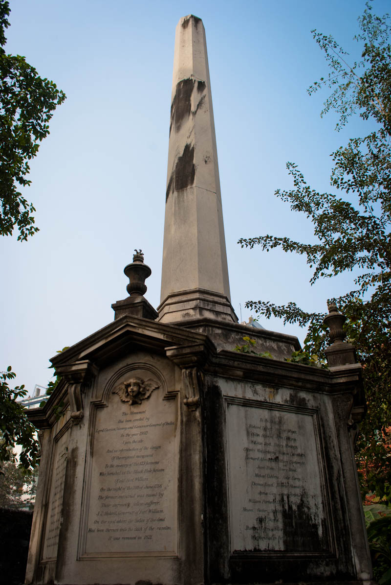 캘커타 블랙홀 사건 희생자들을 기리기 위해 오벨리스크 형태의 기념비가 세워졌다. 최초의 기념비는 홀웰에 의해 세워졌으나 사라졌고, 이후 커즌 경에 의해 새로운 기념비가 세워졌다. 이 기념비는 인도 독립 운동 과정에서 철거되었다가 현재는 콜카타의 세인트 존 교회 묘지에 있다.