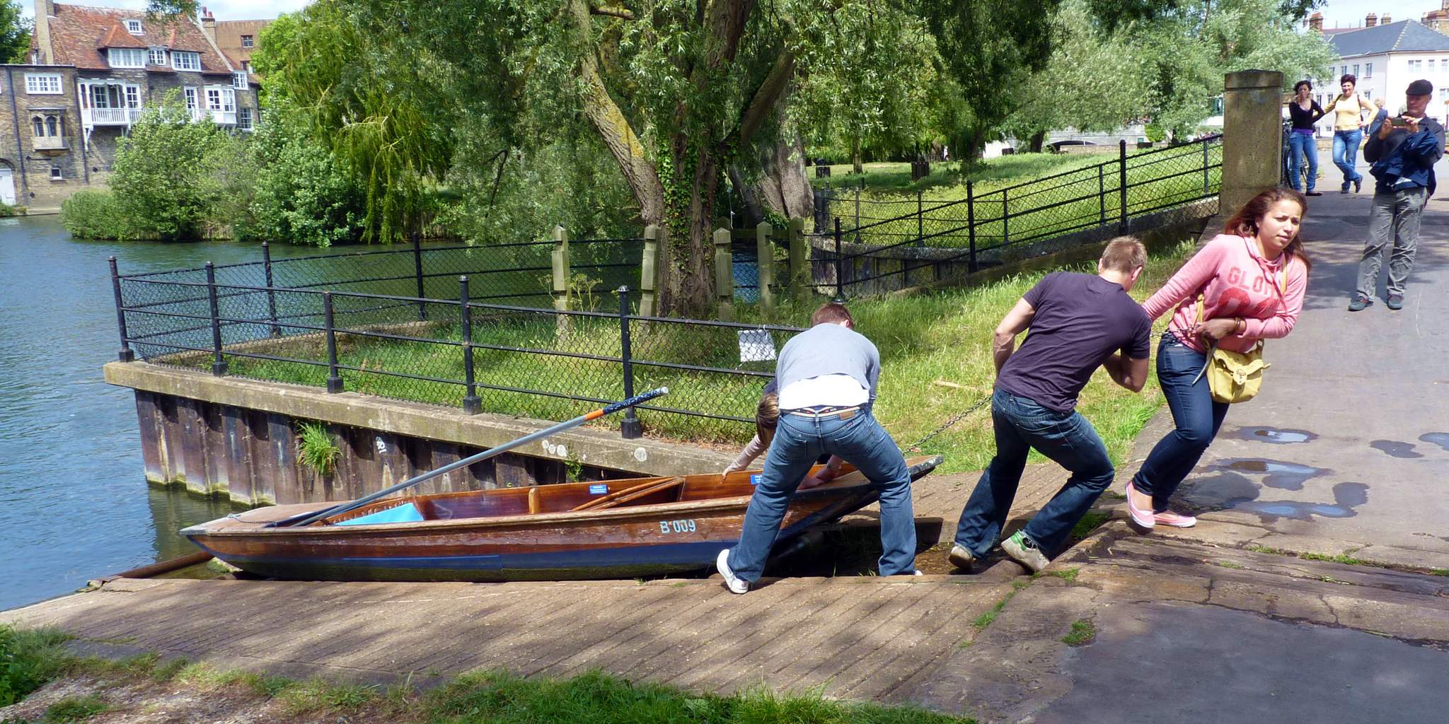 모든 보트는 캠강 보존 위원회 또는 환경청으로부터 항해 면허를 받아야 한다.[12]강 양쪽의 지저스 록 바로 아래와 클레이히스 다리 북쪽 서쪽 둑에 공공 정박지가 있으며(모두 최대 48시간 정박 가능), 케임브리지 시의회의 검토를 받고 있다. 케임브리지 리버사이드에 인접한 난간에 비공식 정박지가 있는데(무제한 정박 가능, 일반적으로 만석), 8~9개의 공식적인 주거용 정박지로 줄어들거나 완전히 철거될 가능성이 있다.[13] 케임브리지의 공유지(지저스 그린, 미드섬머 커먼 및 스터브리지 커먼)의 정박지는 시의 장기 정박 허가증 소지자를 위해 시의회에서 예약해 놓았다. 일부 사유 정박지도 있다.