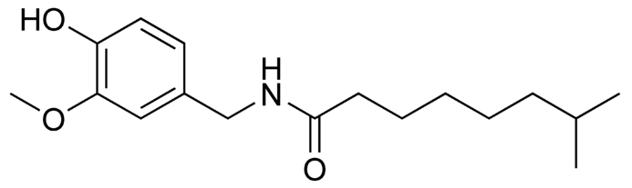 캡사이신은 고추에 함유된 지용성 화합물로, 매운맛을 내는 주요 성분이다. TRPV1 수용체를 자극하여 작열감을 유발하며, 식품의 매운맛을 더하거나 통증 완화, 해충 방지, 승마 스포츠 금지 물질 등 다양한 용도로 사용된다. 캡사이신은 항산화 작용을 하며, 자연적으로 고추 씨앗을 보호하고 종자 분산을 돕는 역할을 한다. 캡사이신은 통각 신경을 탈감작시켜 통증을 완화하는 효과가 있어, 진통제로 사용되기도 한다.