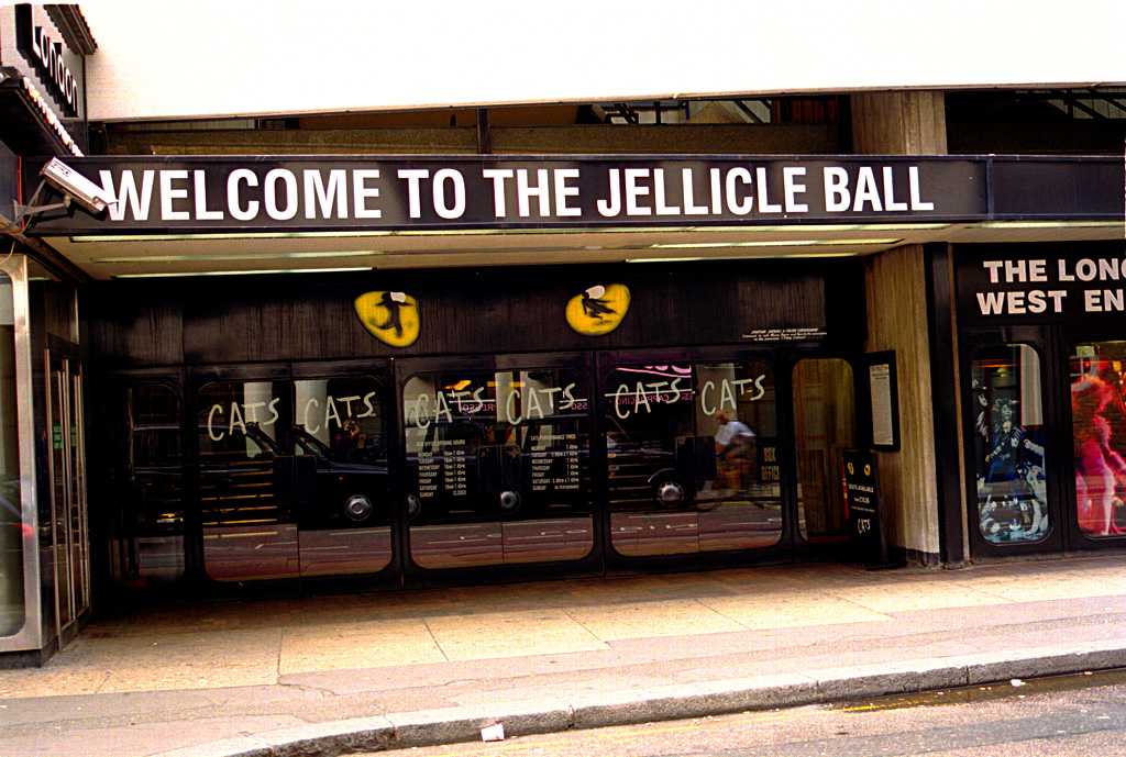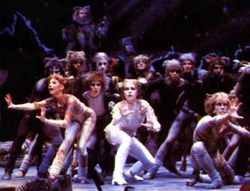 1981년 5월 11일 런던 웨스트엔드의 뉴런던극장에서 초연되었는데, 무대 전체가 회전하는 회전 무대를 사용했다. 초연 당시 주디 덴치가 매춘부 고양이 그리자벨라 역을 맡을 예정이었으나, 아킬레스건 파열 부상으로 일레인 페이지가 대신 캐스팅되었고, 그녀가 부른 《메모리》는 세계적인 히트곡이 되었다.[21]