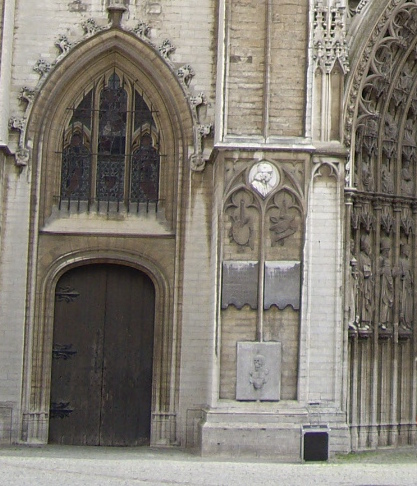 앤트워프 대성당의 기념물. 화가 뤽 튀이만스는 이 해골 부조를 바탕으로 무지엄 안 데 스톰에 현대적인 모자이크를 제작했다.