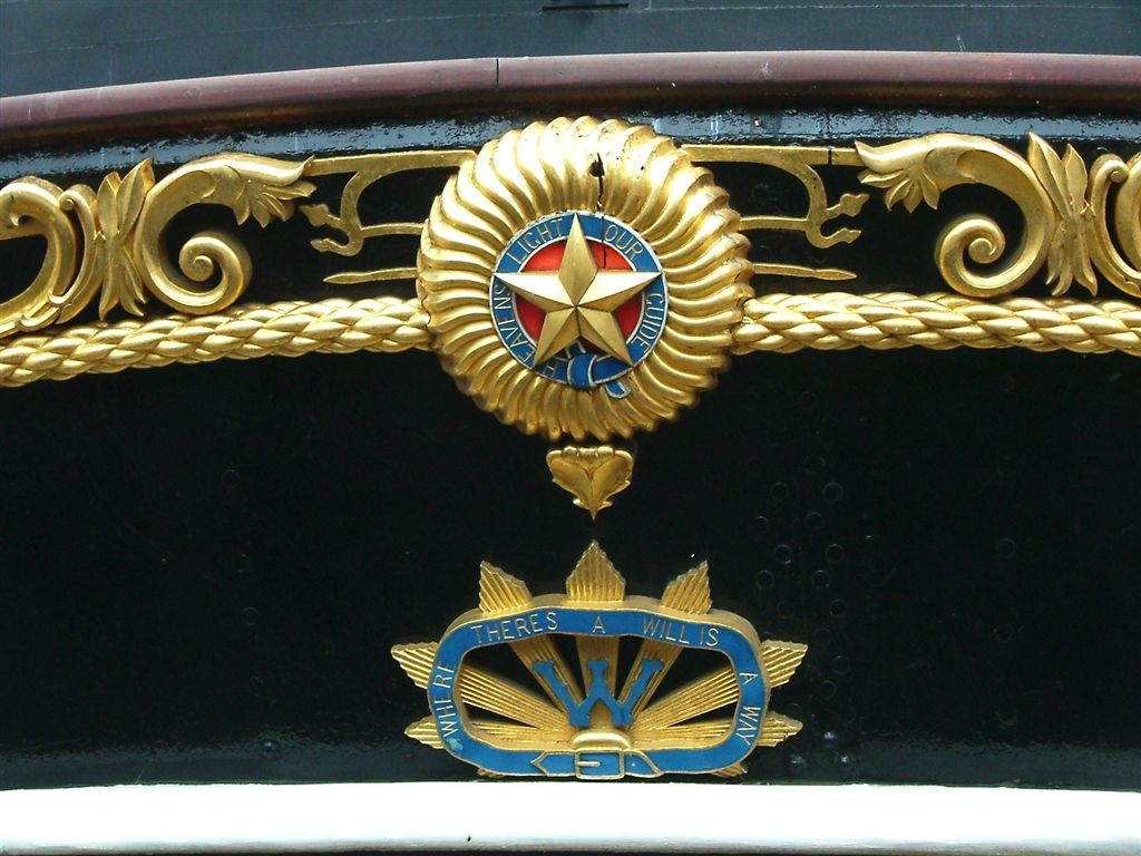 배의 뱃머리에는 로버트 번스의 시 ''탐 오' 섀터''에 나오는 마녀 내니 디를 형상화한 조각상이 장식되어 있다. 이 조각상은 마녀가 주인공 탬 오 섄터의 말을 추격하며 말꼬리를 잡으려다 놓치는 장면을 묘사한 것으로, 손에는 말총으로 보이는 밧줄 뭉치가 들려 있다.[63]