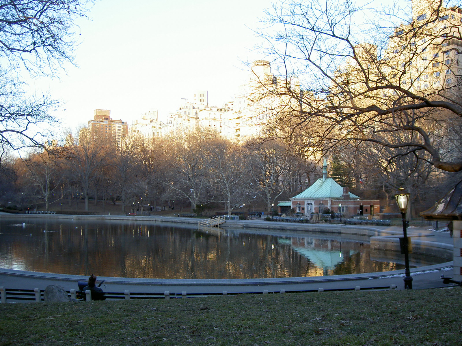 프레더릭 로 옴스테드와 캘버트 복스는 센트럴 파크 설계 공모전에서 승리한 그린스워드 계획(Greensward Plan)에서 정형식 정원 대신 "단단한 가장자리"를 가진 반사 연못을 만들고, 그 중앙에 온실을 건설할 것을 제안했다. 그러나 실제로는 반사 연못만 건설되었다.[2]이후 수련을 전시하는 자연적인 연못이 조성되었다. 5번가를 향한 가파른 제방에는 자작나무와 붉은 서어나무(Fagus sylvatica) 등을 심어 빠르게 숲이 조성되도록 했다.[3] 캘버트 복스의 조수이자 파트너였던 새뮤얼 파슨스는 식재 감독관으로 임명되어 이 연못을 조성했다.[3] 연못의 바닥은 깊이가 3피트(약 91cm) 정도로 컵처럼 단단하게 시멘트로 발라졌고, 45cm 깊이의 토양은 퇴비로 풍부하게 만들어져 바닥 위에 놓였다.[3] 물은 램블과 호수(the Ramble and Lake)에서 공급되었는데, 이곳은 역사적인 소킬(Sawkill) 개울이 있던 곳으로 한때 이스트 강(East River)으로 흘러들어갔다.[4]