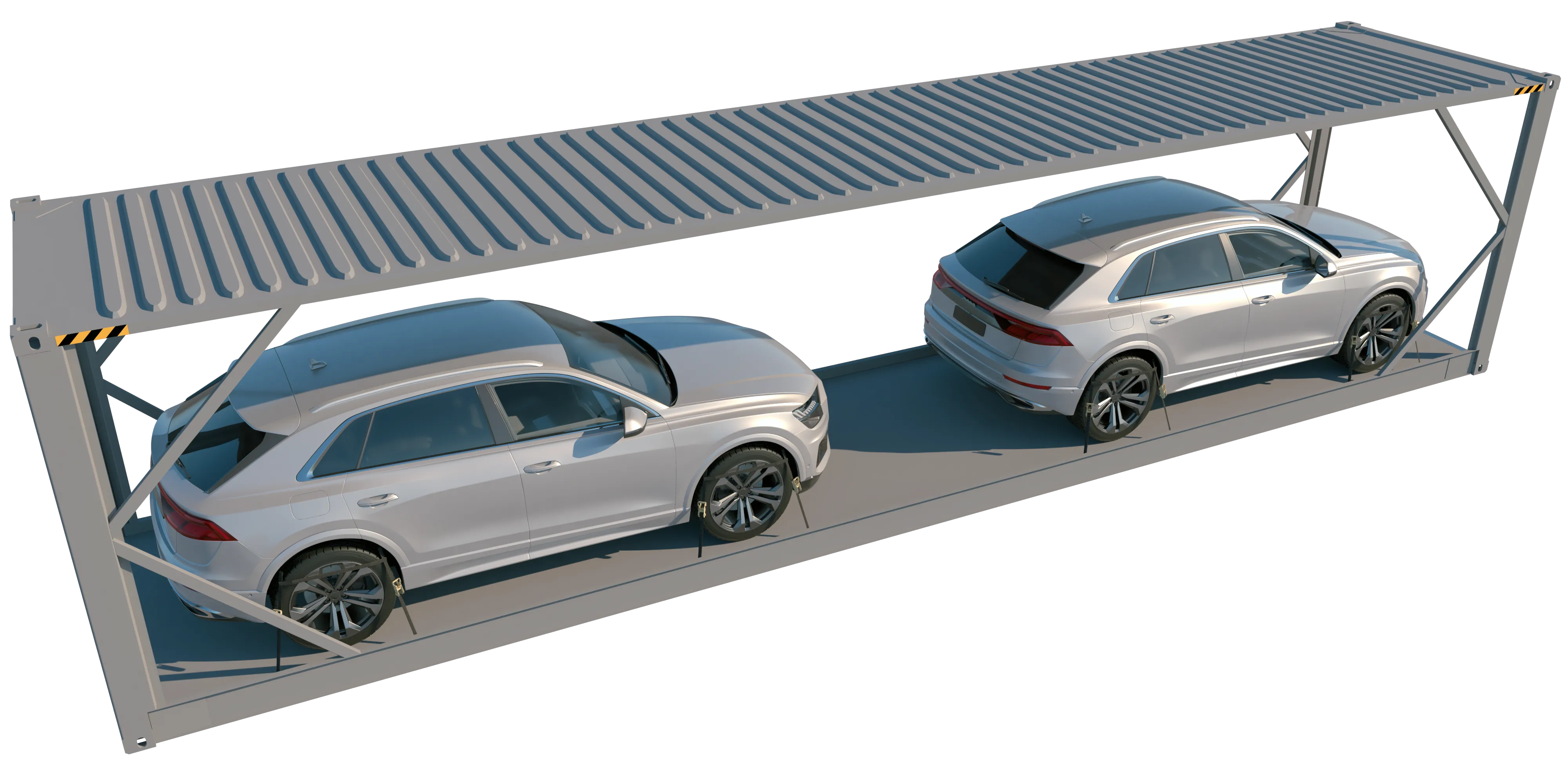 유럽, 일본, 미국 내수용 장치는 주로 도로 및 철도로 운송되며 2~3개만 쌓을 수 있다.[41] 양쪽 끝은 매우 견고하지만 운송 중에 컨테이너가 약간 구부러진다.[46]