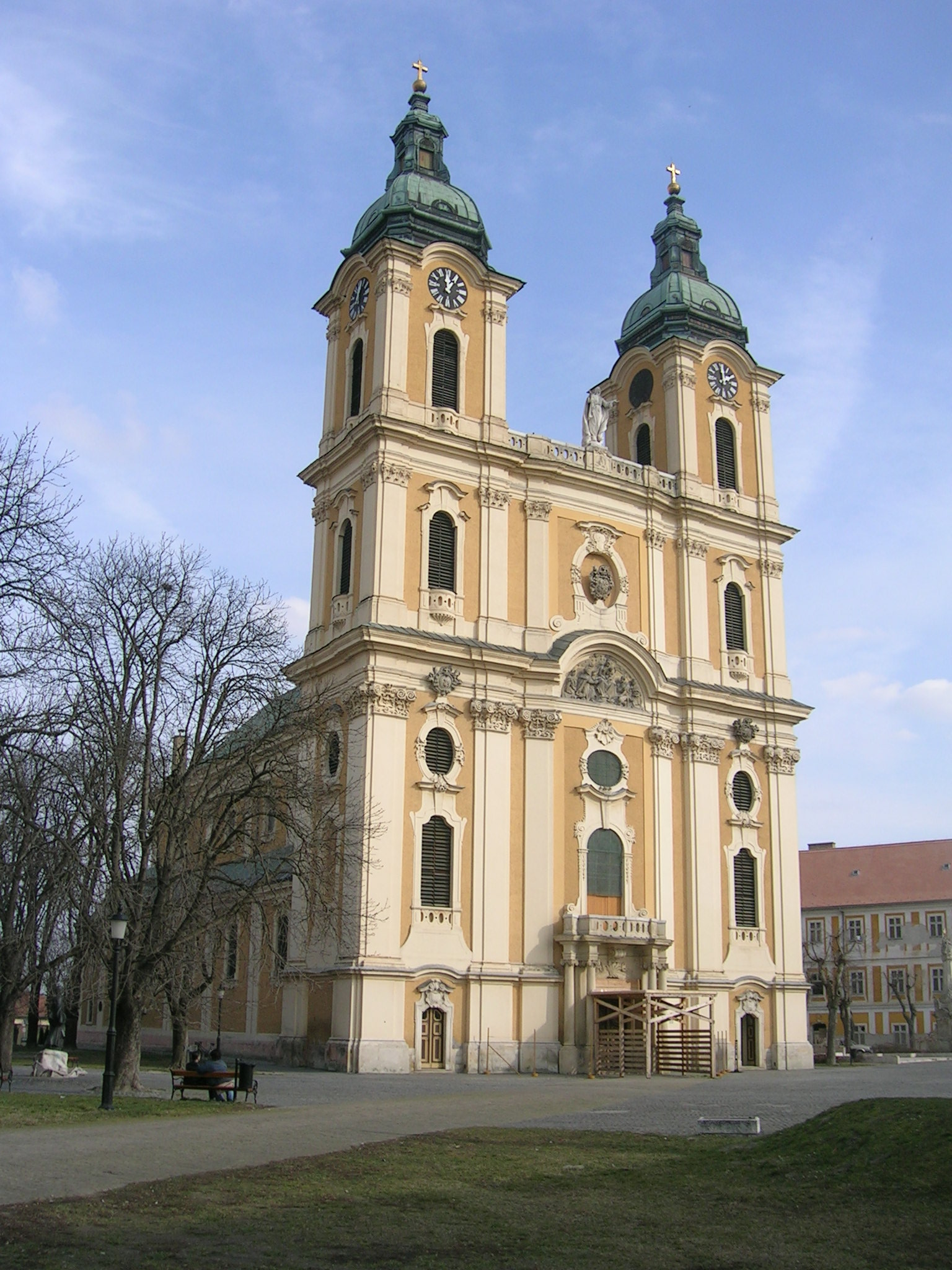 현재의 이탈리아 바로크 양식 성당은 임레 차키 대주교가 설계하였고, 1735년 가보르 파타치치 대주교가 초석을 놓았으며, 안드라스 마이어호퍼가 설계를 맡았다. 17세기 말 번개로 인해 성당의 두 개의 높은 탑이 불탔으며, 19세기에 죄르지 바로시 대주교(1905–1910)가 에르뇌 페르크와 죄르지 페트로바츠에게 복원을 맡겼고, 지하 묘지도 건설했다.
