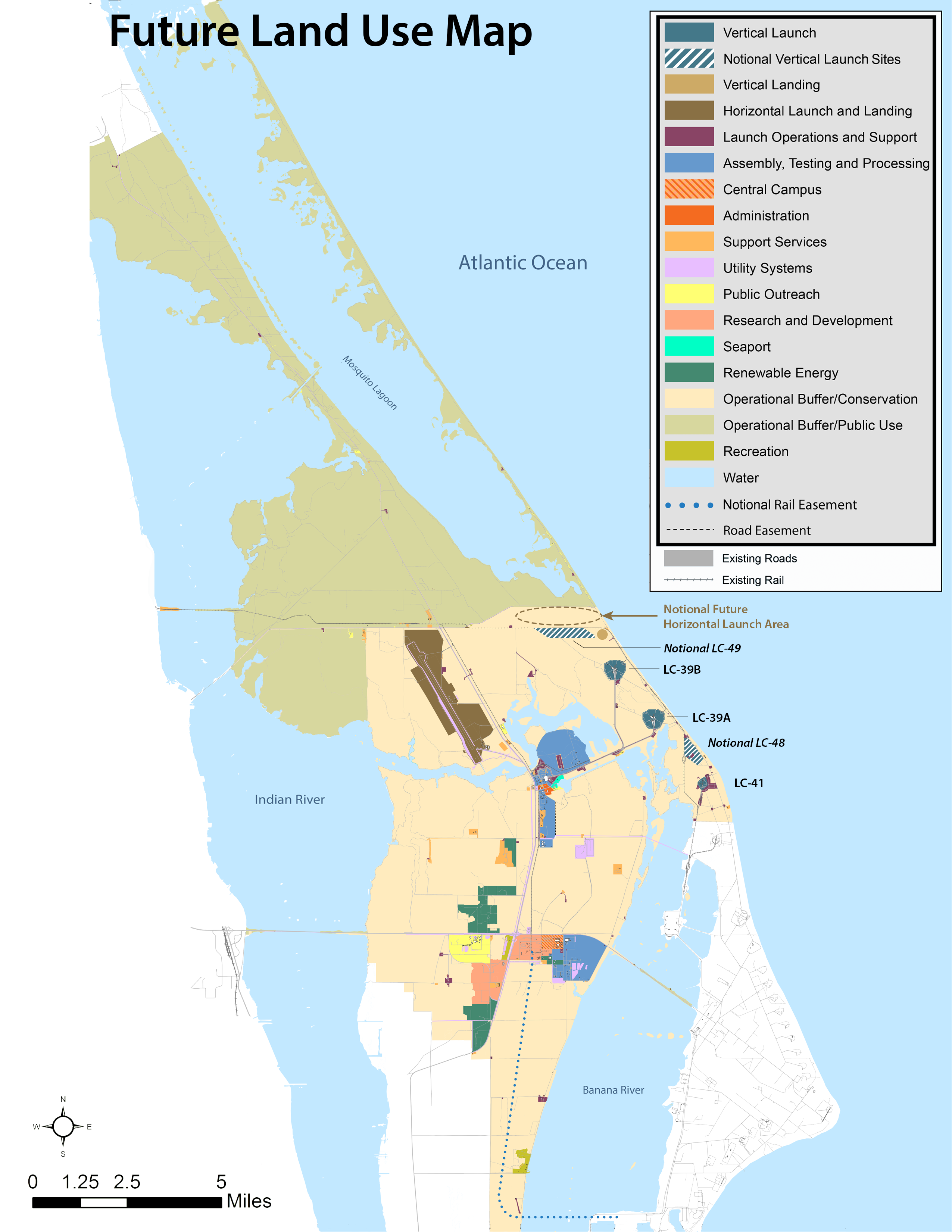 마스터 플랜은 또한 LC-39B 북서쪽에 제안된 새로운 수직 발사대와 LC-49 북쪽의 수평 발사 구역, 그리고 왕복선 착륙 시설(SLF)과 그 앞치마 구역을 두 번째 수평 발사 구역으로 전환하는 것을 언급하고 있다.[81][80]