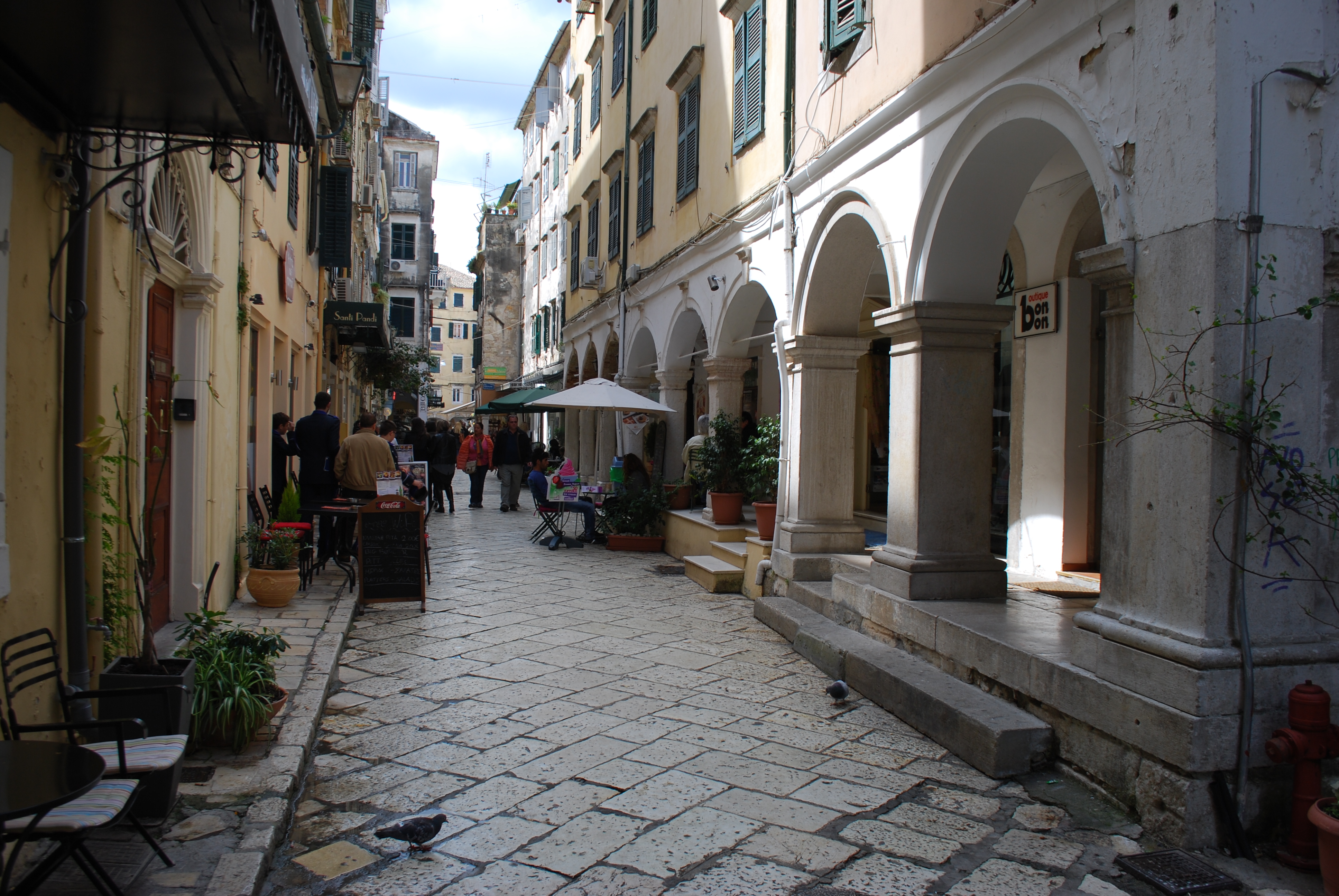 갈리차 만을 향하는 해안 산책로가 있다. 또한 리스톤 (Λιστόν|리스톤el, Liston)이라고 불리는 시타델과 마을을 잇는 훌륭한 산책로도 있다. 리스톤에는 고급 레스토랑과 유럽 스타일의 비스트로가 늘어서 있다. "리스톤"은 영어의 "리스트 온"(List on)에서 유래된 것으로, 노점상인의 물품 목록, 즉 메뉴를 의미한다.