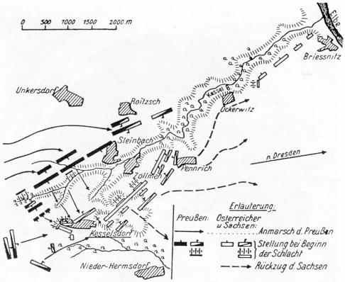 그러나 작센군 좌익에서 프로이센 기병대가 작센 기병대를 격파하고, 프로이센군 우익 보병이 케셀스도르프 마을을 점령하여 작센군 좌익을 공격, 작센군 중앙을 배후에서 포위하기 시작했다. 레오폴트 1세는 전군 돌격을 명령했고, 진지를 이탈했던 작센군은 지형 때문에 후퇴하지 못하고 전멸당했다. 레오폴트 1세는 직접 절벽을 기어올라 포병진지에 돌입하는 용맹을 보였다. 그는 총탄에 옷이 뚫렸으나, 큰 상처는 입지 않았다.
