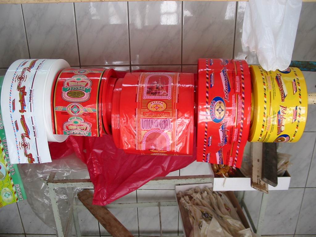- 진공 팩: 진공 밀봉된 플라스틱 팩에 소금물에 느슨하게 들어 있는 형태이다. 주로 중소 규모의 소시지 제작자가 사용하며, 사용 및 보관이 용이하다는 장점이 있다.