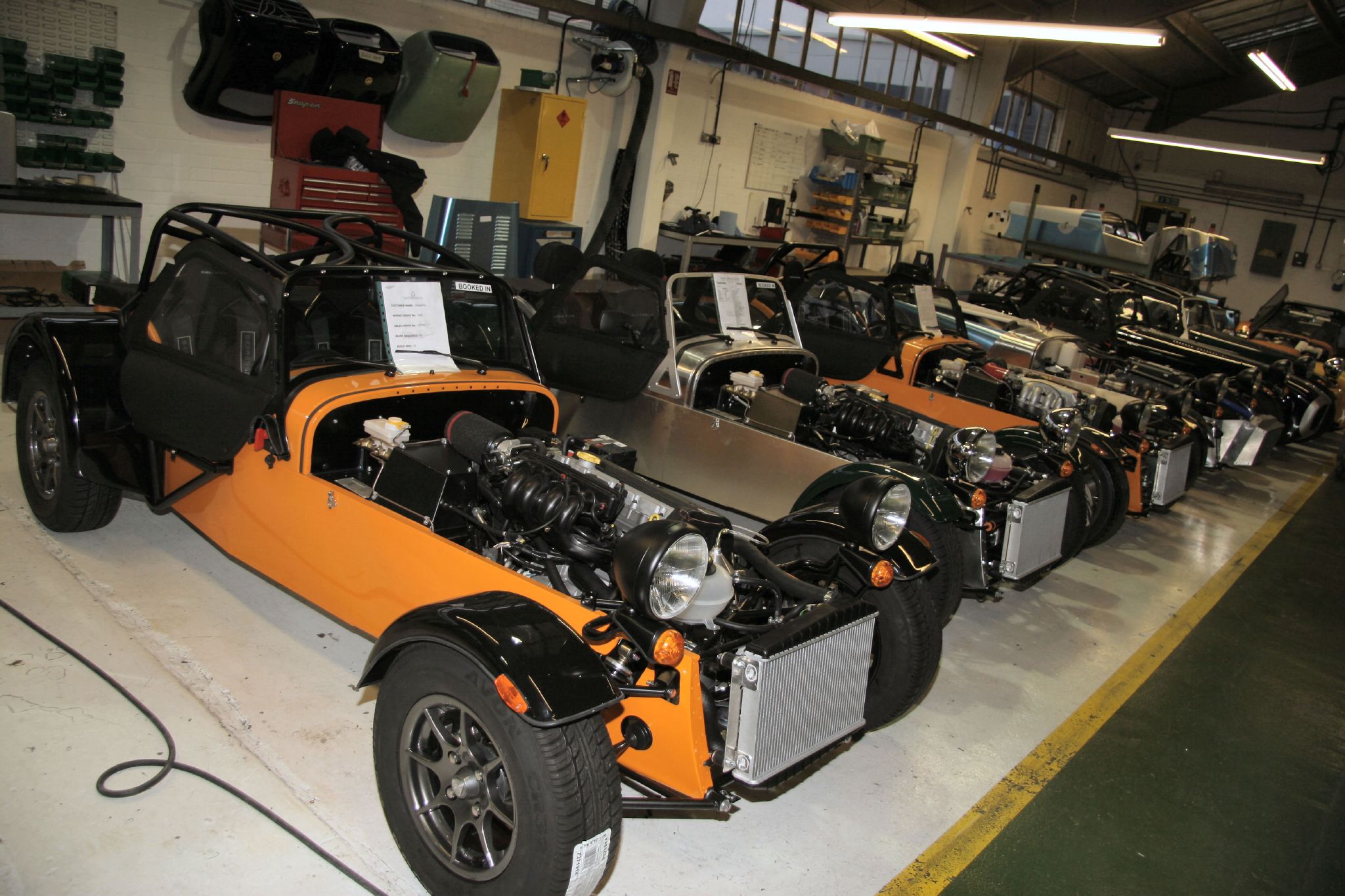 케이터햄 자동차 생산 공장, 차량은 수작업으로 제작된다.