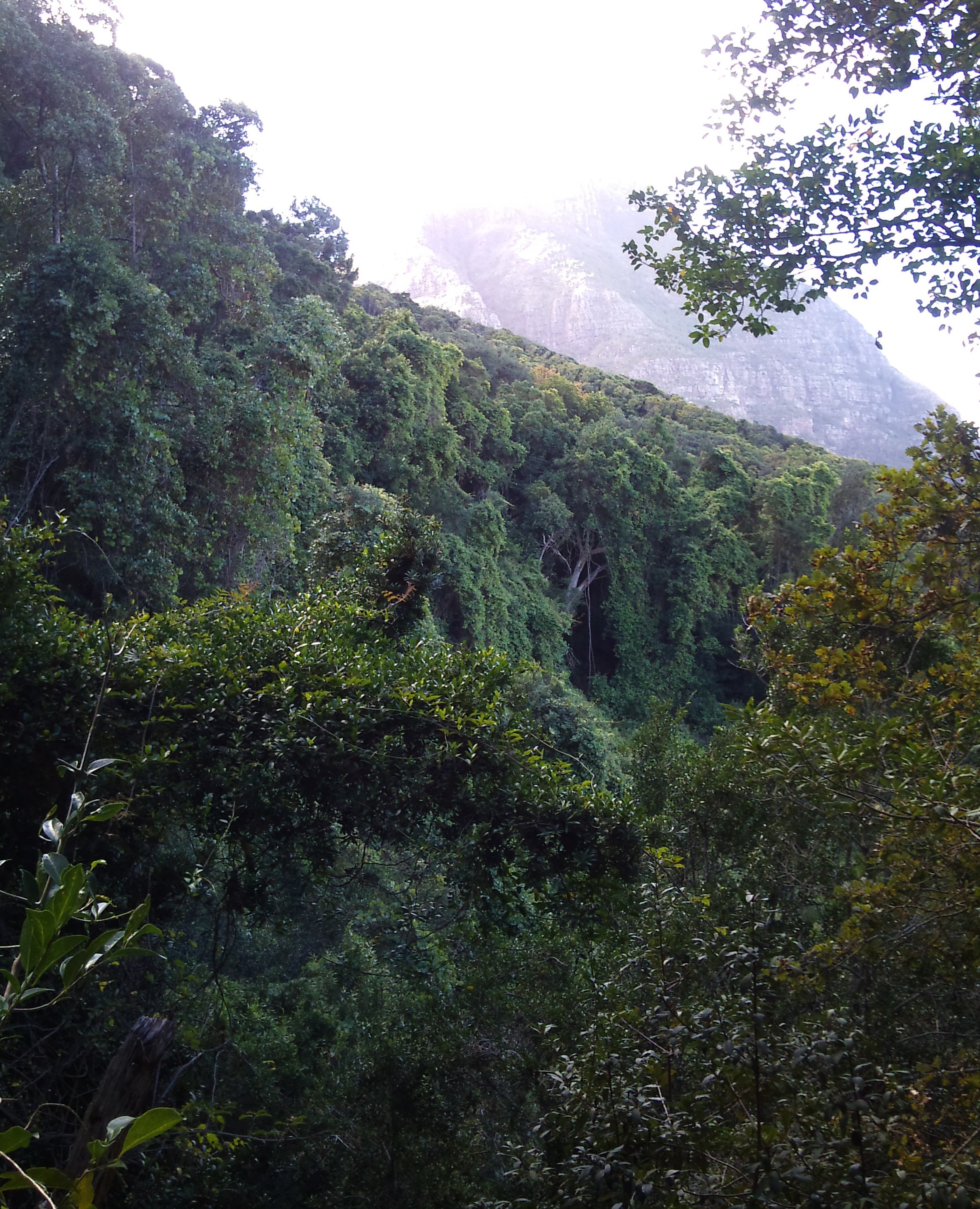 토착 숲의 잔존 구역은 더 습한 협곡에 남아 있다. 그러나 대부분의 토착 숲은 희망봉 건설에 필요한 석회 가마용으로 초기 유럽 정착민들에 의해 벌목되었다. 원래 숲의 정확한 범위는 알려져 있지 않지만, 대부분 데블스 피크, 테이블 마운틴, 백 테이블의 동쪽 경사면을 따라 있었을 것으로 추정된다. 론데보쉬, 키르스텐보쉬, 클래센보쉬, 위테보멘과 같은 지명이 남아 있는데, 이는 네덜란드어로 "보쉬(bosch)"가 숲을, "보멘(bomen)"이 나무를 의미하기 때문이다. 후트 베이(네덜란드어로 "후트(hout)"는 나무를 의미) 역시 이름에서 알 수 있듯이 목재와 연료의 공급원이었다. 1900년대 초, 콘스탄티아버그에서 데블스 피크 앞까지, 심지어 산 정상까지 상업용 소나무 농장이 조성되었으나, 현재는 대부분 제거되어 토착 아프로몬탄 숲이 없었거나 살아남지 못한 지역에서 핀보스가 다시 번성하고 있다.