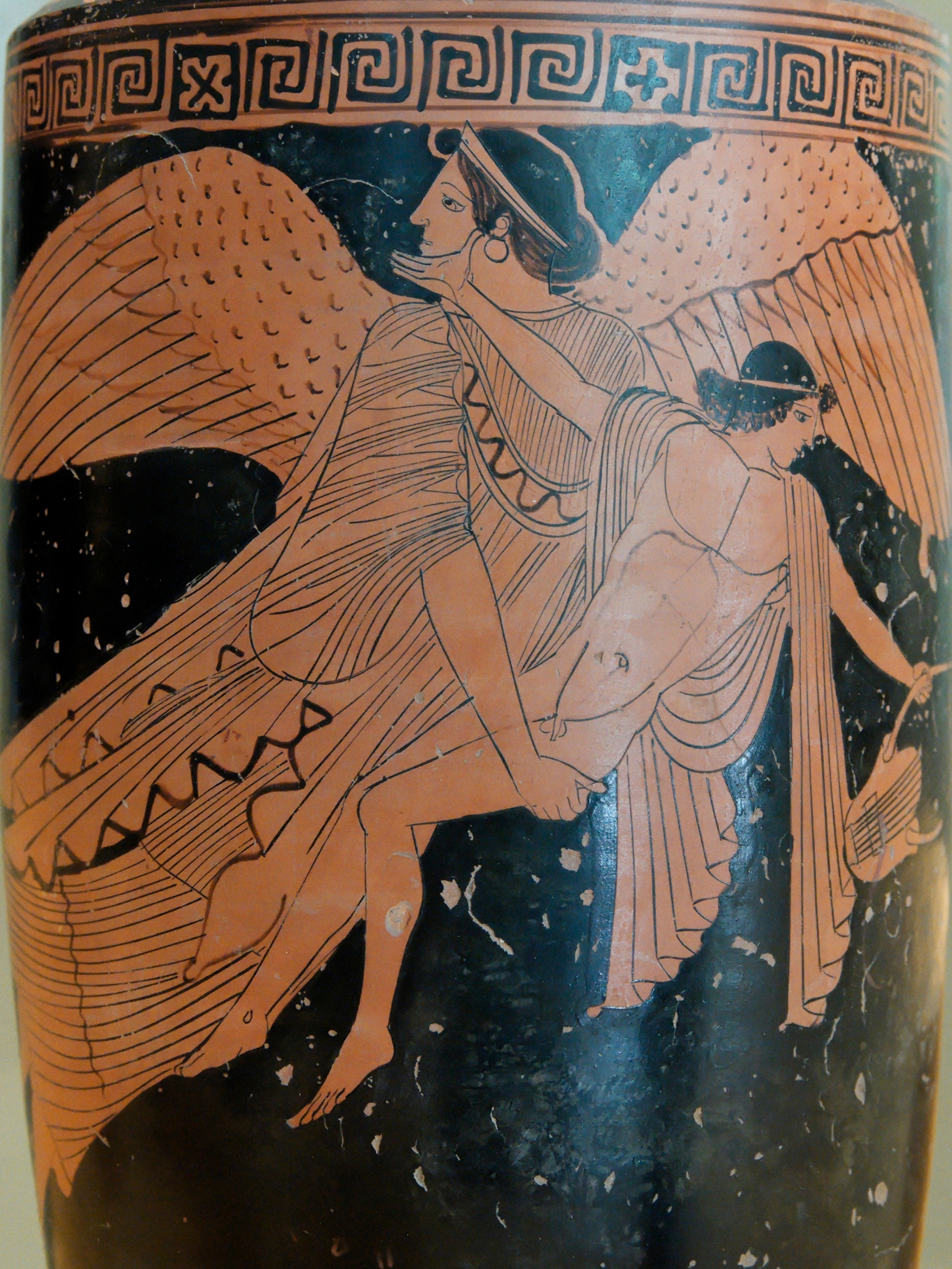 결국 에오스는 케팔로스를 돌려보내며 그의 아내 프로크리스의 정절에 대한 의심을 심어주었고, 이는 이후 두 사람의 비극으로 이어지는 계기가 되었다. 아테네인들은 케팔로스가 자국의 건국 영웅 에렉테우스의 딸과 결혼했다고 주장하며 이 신화를 지역화했다.[9] 이 이야기의 주요 문헌 출처는 고대 그리스 시인 아테네의 페레퀴데스의 기록으로 여겨진다.[16]